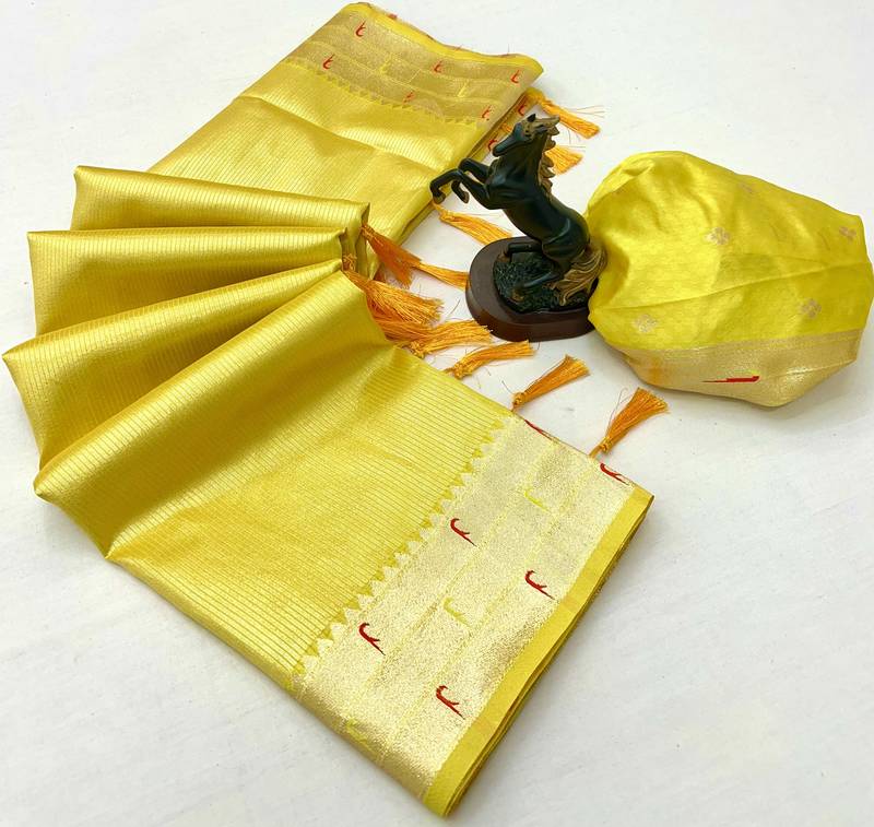 | Product Name | Lemon Tissue Silk Paithani Saree With Floral Zari Weaving | |