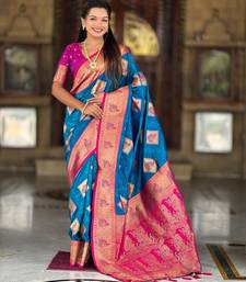 Blue elegant art silk woven saree with rich zari border