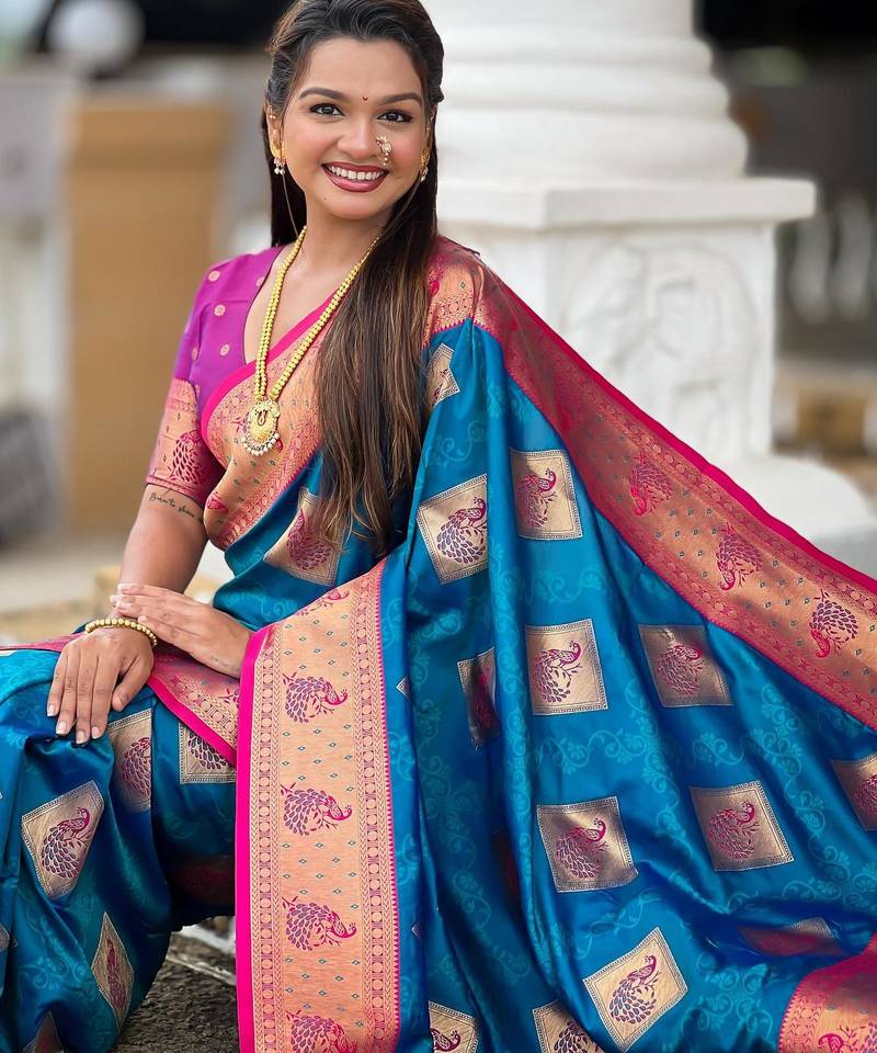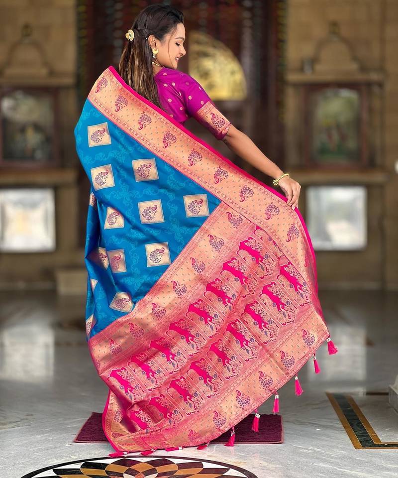 | Product Name | Blue Elegant Art Silk Woven Saree With Rich Zari Border | |