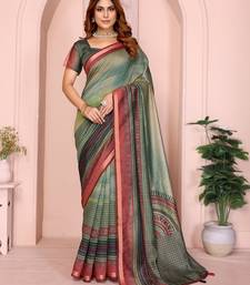 Light green printed art silk designer pallu saree
