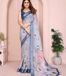 Light grey printed art silk designer pallu saree