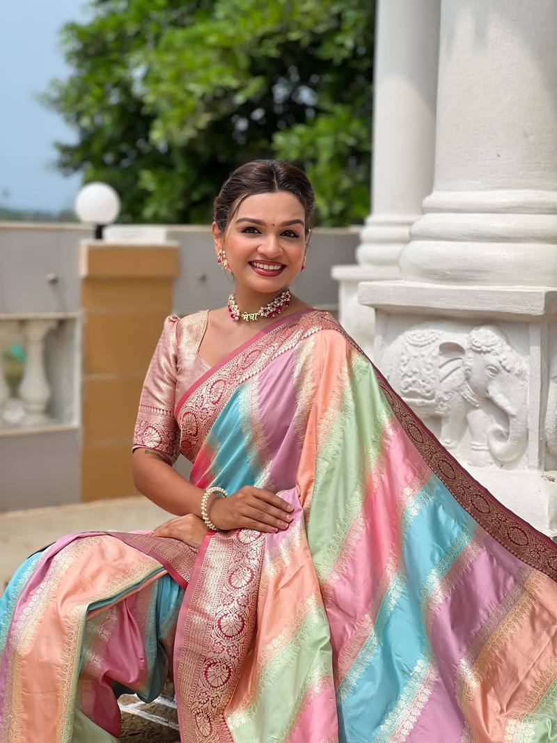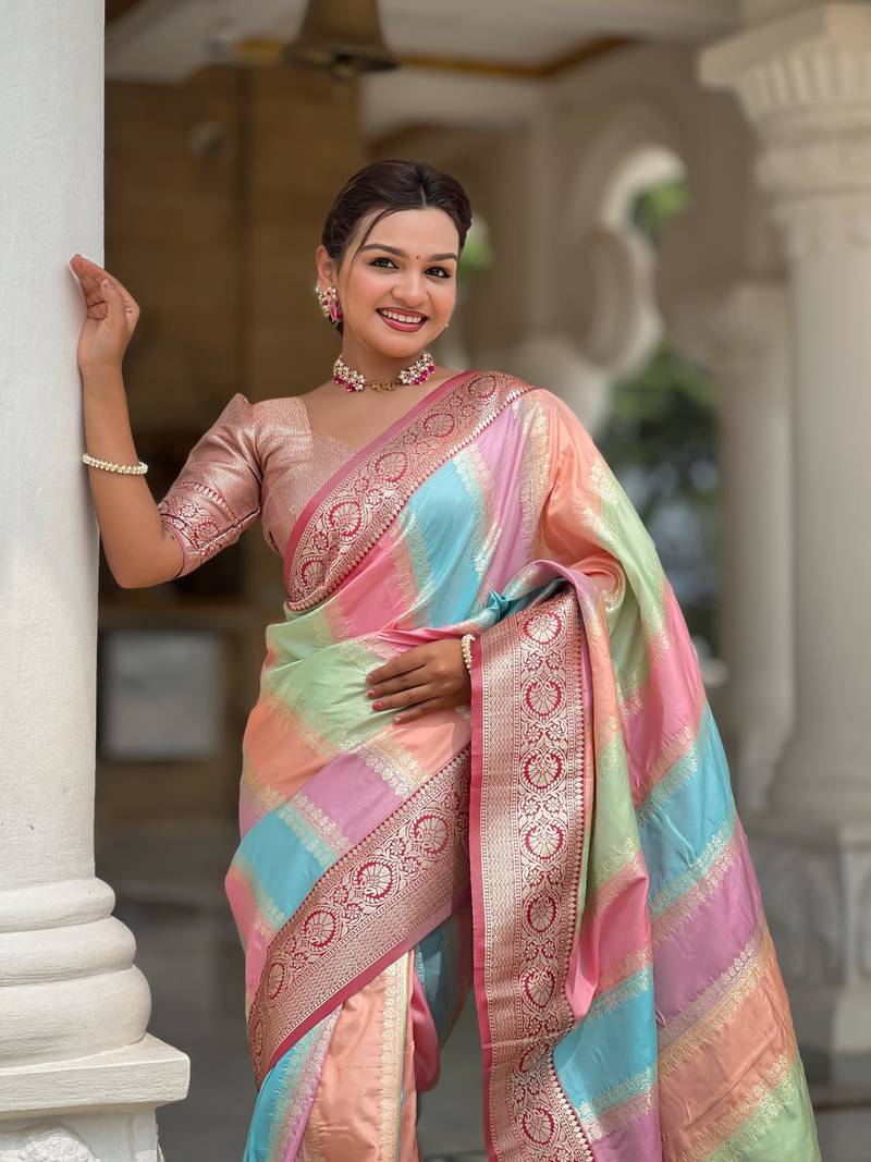 | Product Description | Soft Silk Saree With Zari Weaving Meenakari Design All Over The Saree & Zari Weawing Contrast Rich Pallu With Cotrast Weawing Border & Tessels Attached At Pallu End. Blouse : Soft Silk Weawing Contrast Blouse Piece |