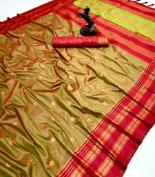 Mehendi soft silk saree with narayan border & dual zari motifs