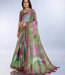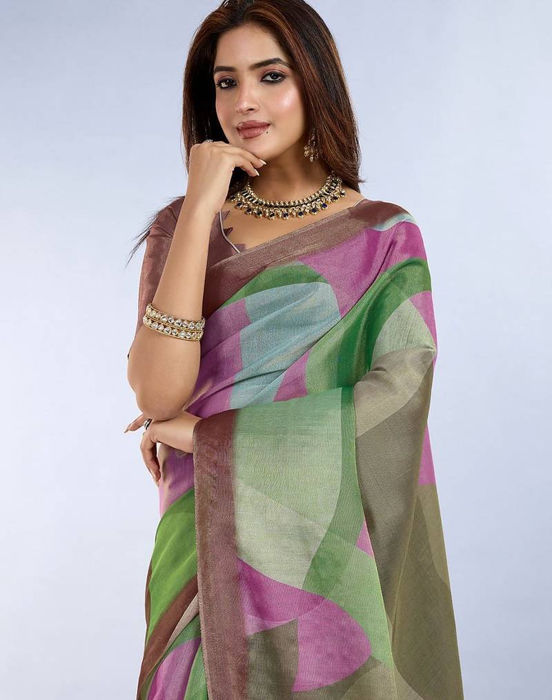 Multicolor printed art silk designer pallu saree
