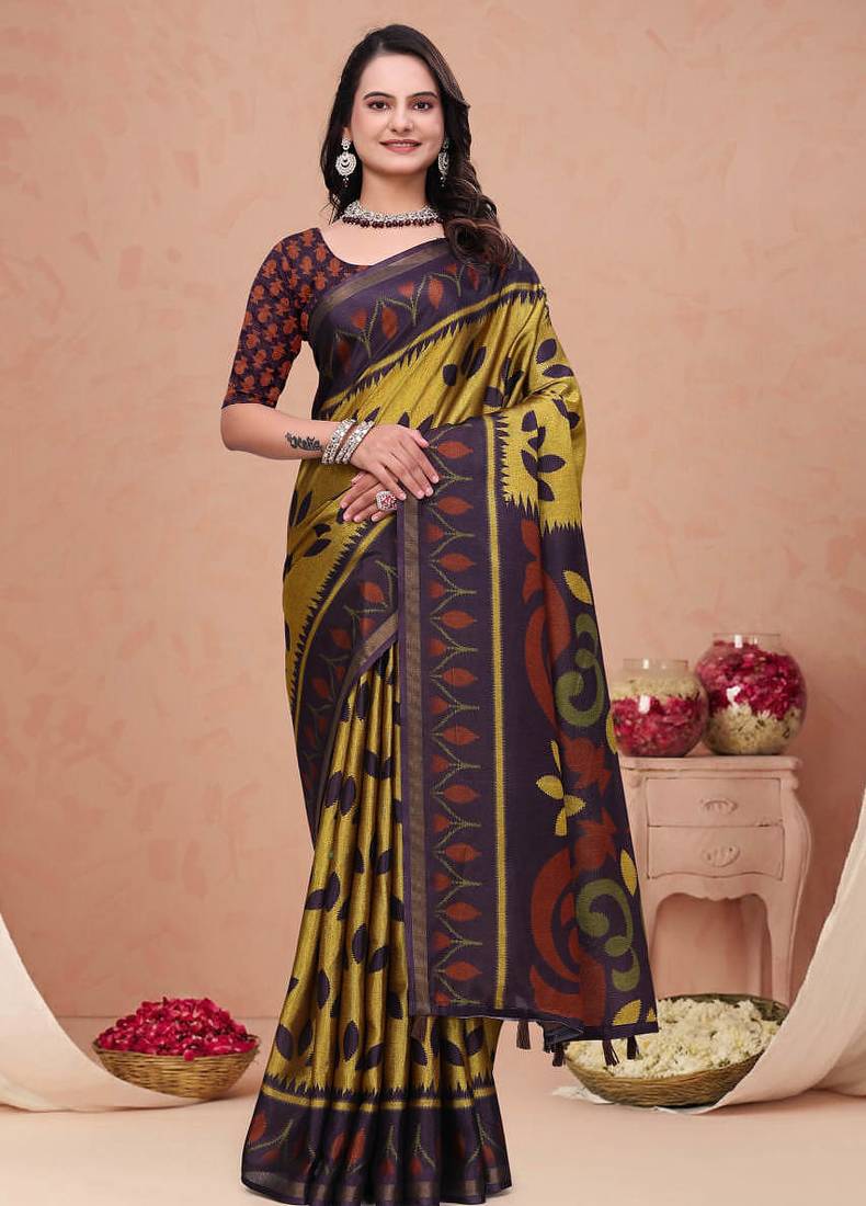 | Product Name | Mustard Printed Art Silk Designer Pallu Saree | |