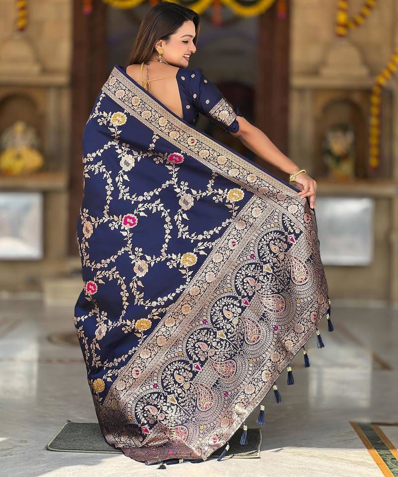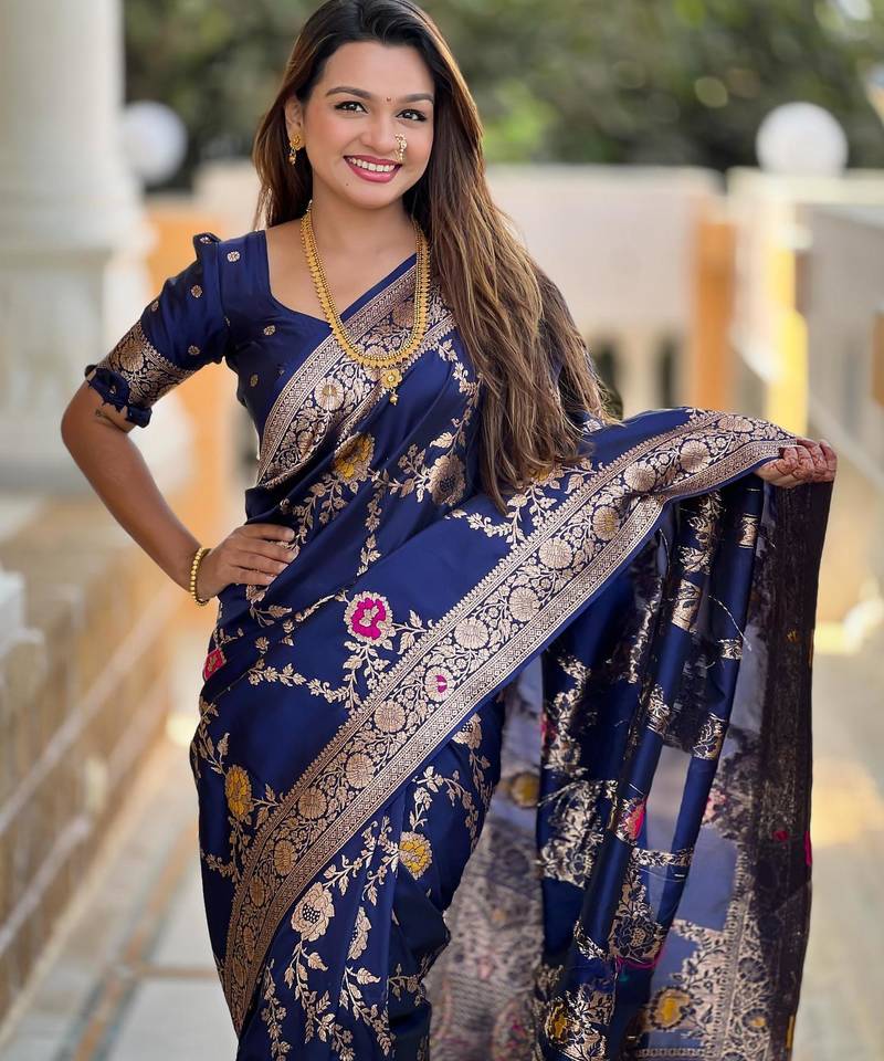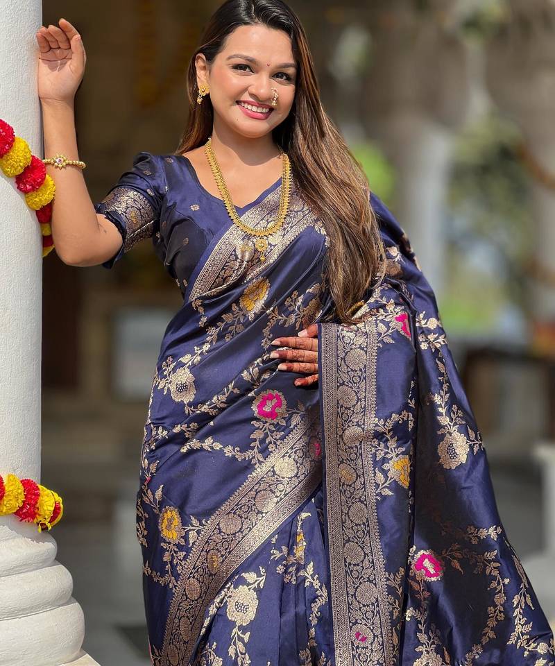 | Product Name | Navy Blue Elegant Art Silk Woven Saree With Rich Zari Border | |