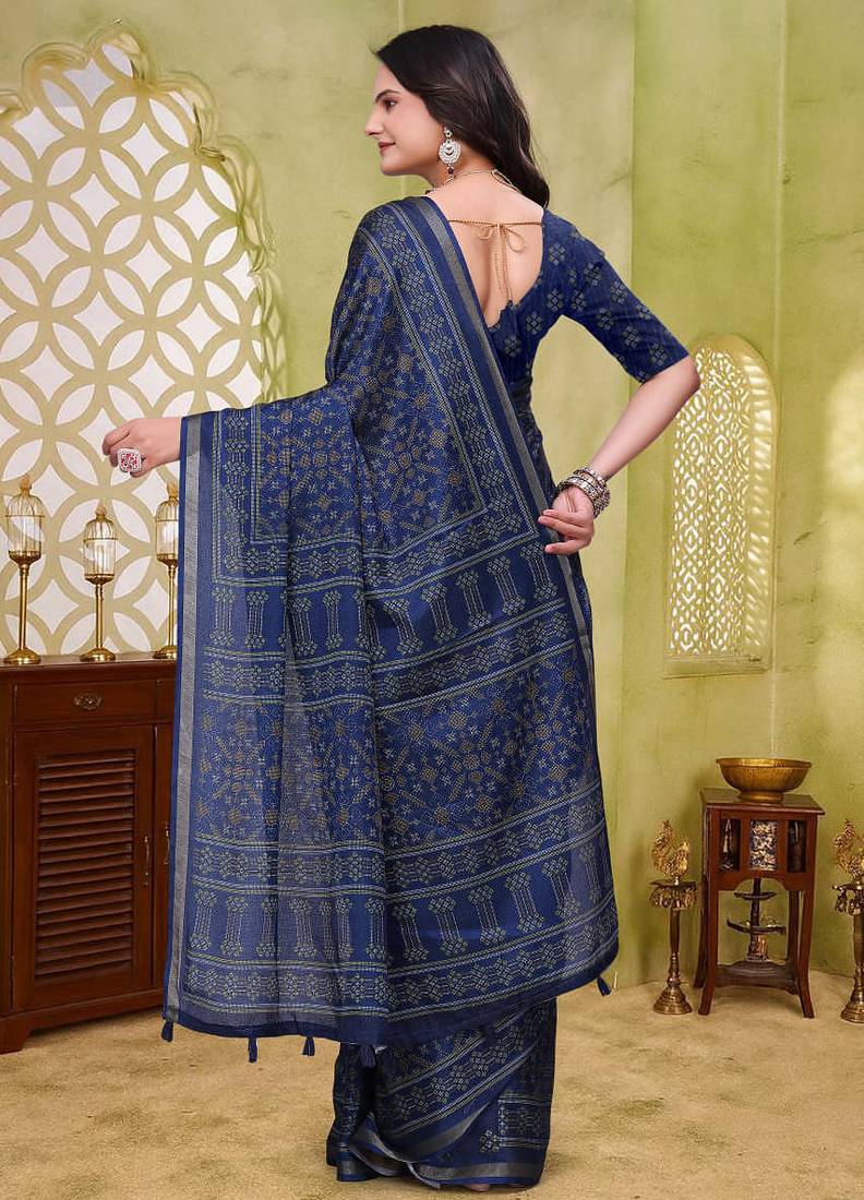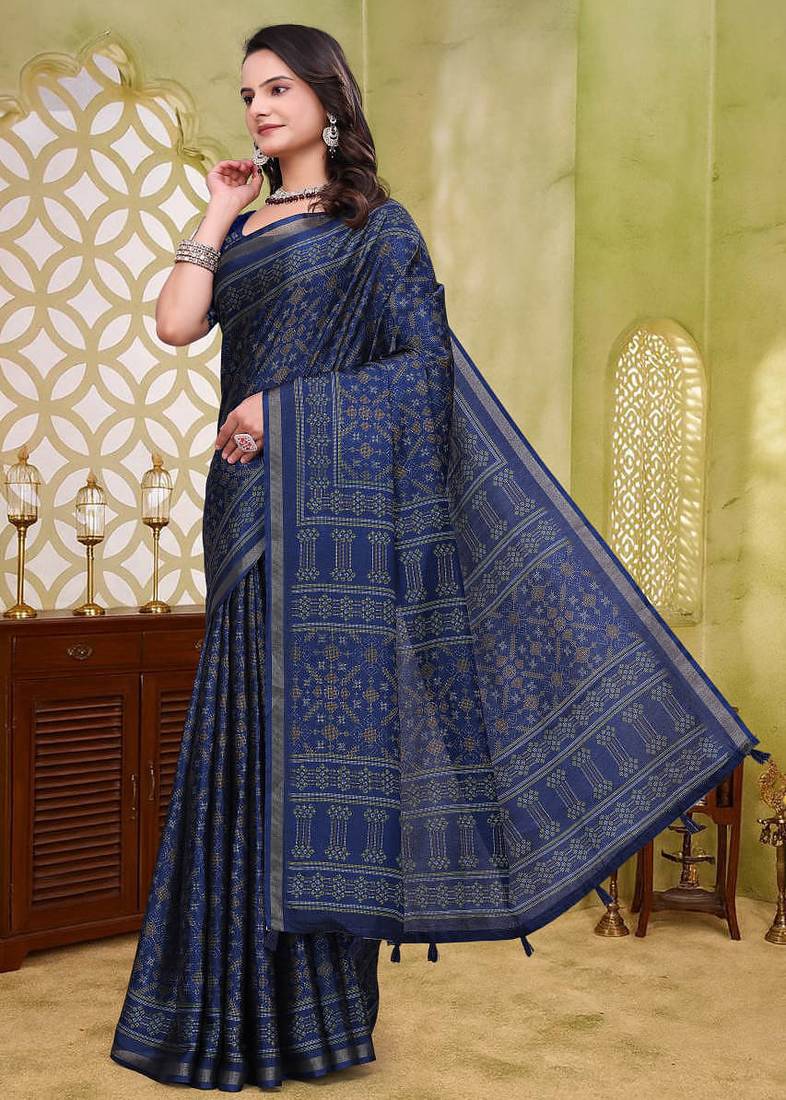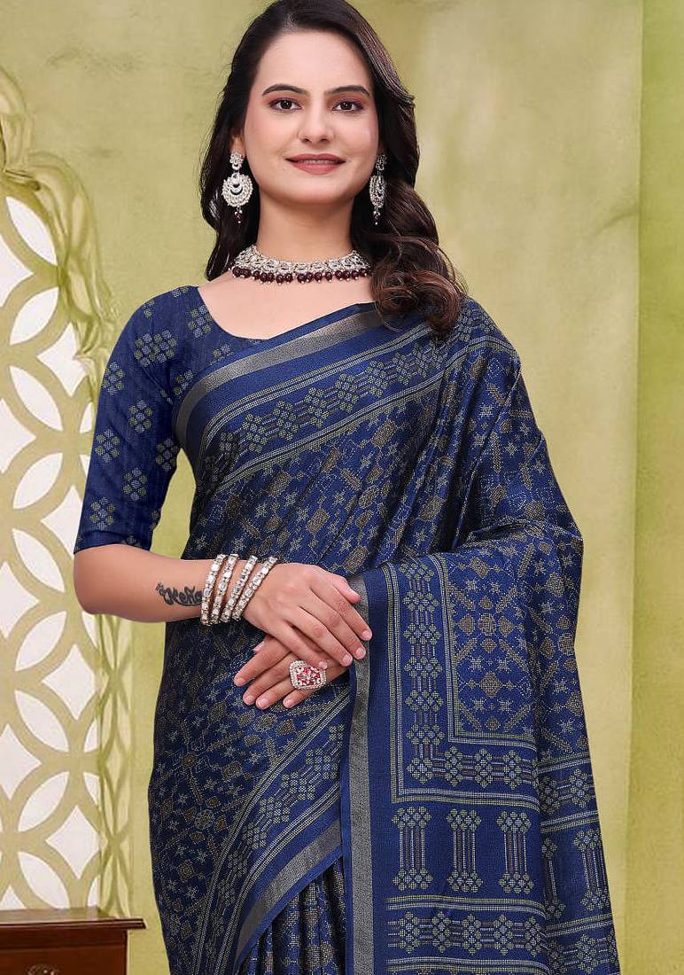 | Product Name | Navy Blue Printed Art Silk Designer Pallu Saree | |