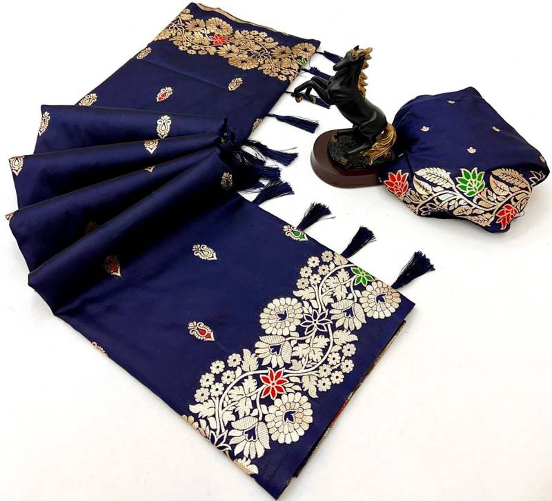 | Product Name | Navy Blue Soft Silk Saree With Butti Design & Floral Zari Border | |