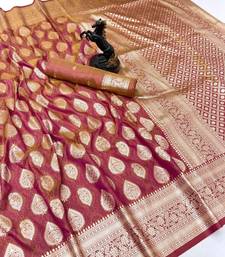 Onion pink soft silk saree with zari butti design & rich woven pallu