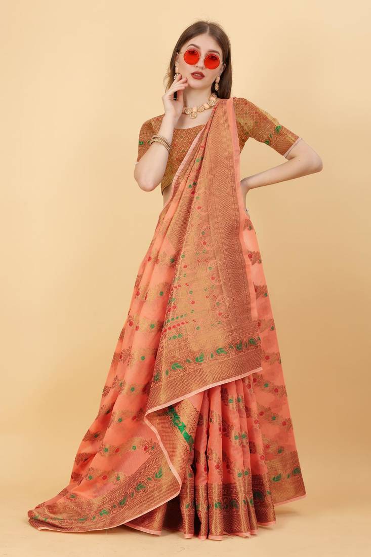 | Product Name | Orange Elegant Art Silk Woven Saree With Rich Zari Border | |