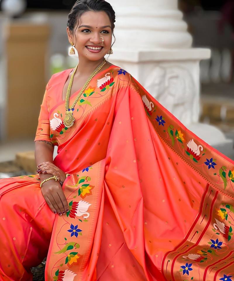 | Product Description | Soft Paithani Silk Saree With Zari Weawing Motifs Design And Meenakari Weawing Rich Pallu With Meenakari Weawing Border & Tassels Attached At Pallu End. Blouse : Enrich Silk Weawing Contrast Blouse Piece With Sleeve Border , |