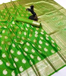 Parrot green banarasi silk saree with zari embossed mango design & rich pallu