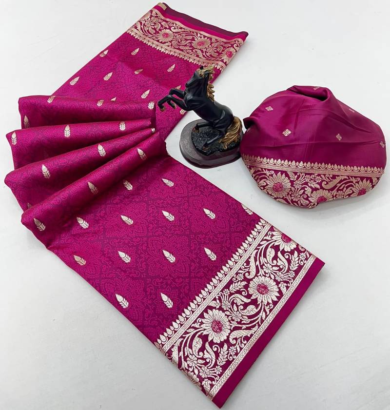 | Product Name | Pink Banarasi Silk Saree With Embossed Weaving Design | |