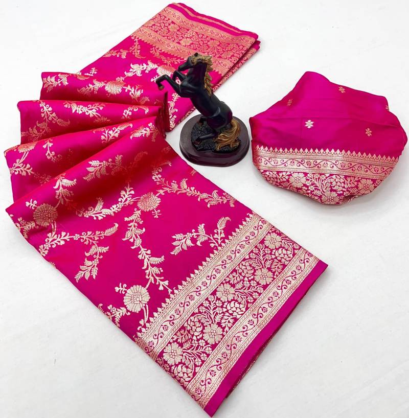 | Product Name | Pink Banarasi Silk Saree With Zari Embossed Jal Design & Rich Pallu | |