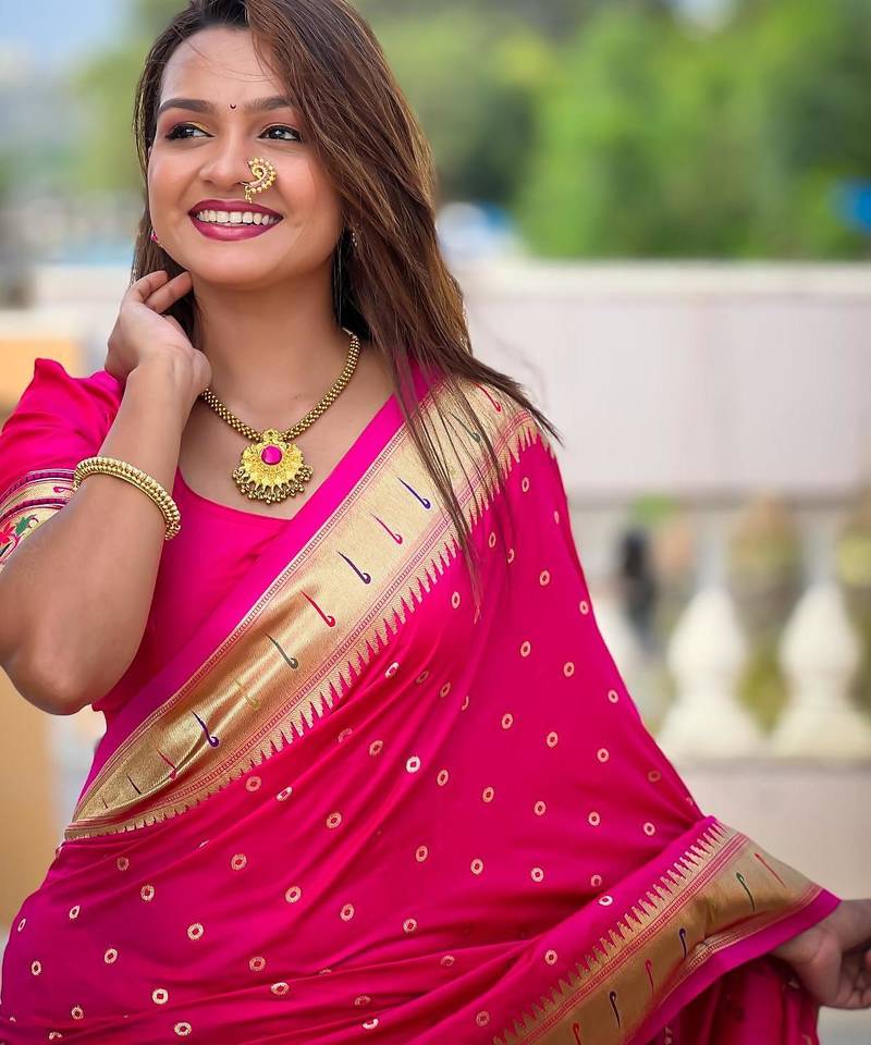 | Product Description | Soft Paithani Silk Saree With Zari Weawing Meenakari Motifs Design And Meenakari Weawing Rich Pallu With Meenakari Weawing Border & Tassels Attached At Pallu End. Blouse : Enrich Silk Weawing Contrast Blouse Piece With Sleeve Border , |