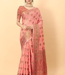 Pink elegant art silk woven saree with rich zari border