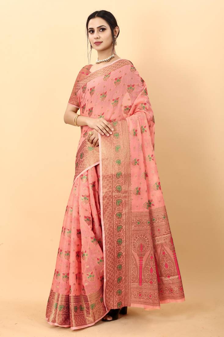 | Product Description | Soft Cotton Saree With Zari Weawing Design And Rich Zari Weawing Pallu With Zari Weawing Border , Blouse : Silk Weawing Blouse Piece |