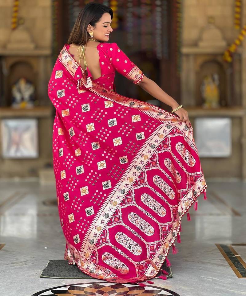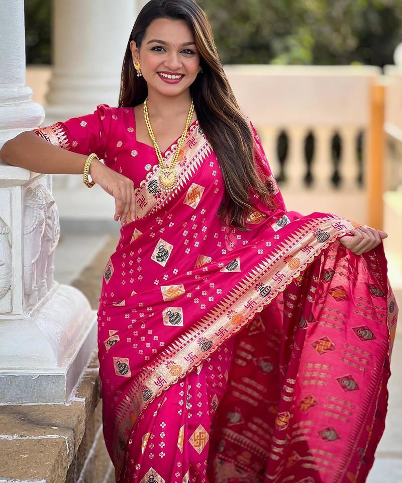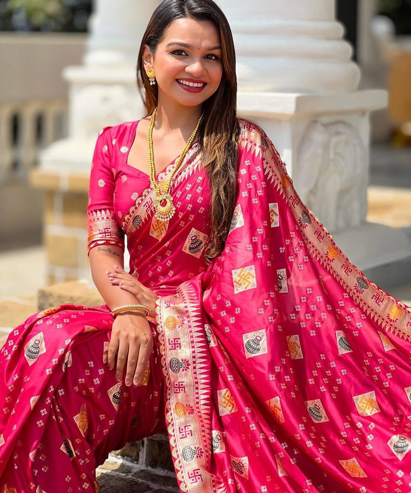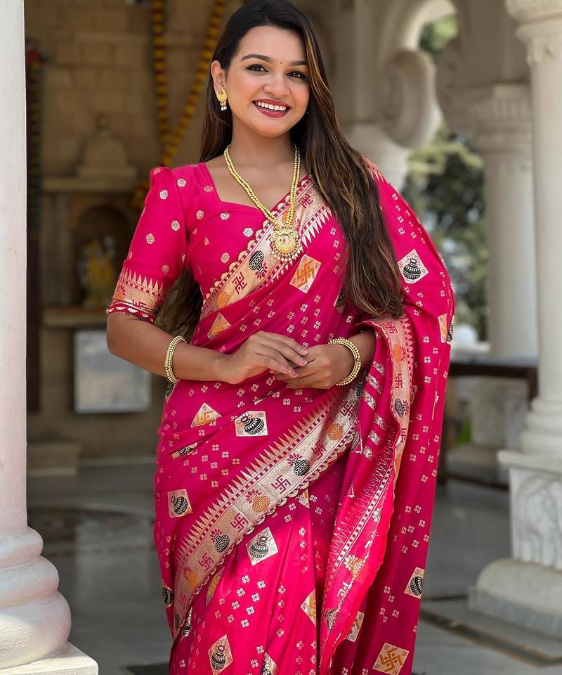| Product Name | Pink Elegant Art Silk Woven Saree With Rich Zari Border | |