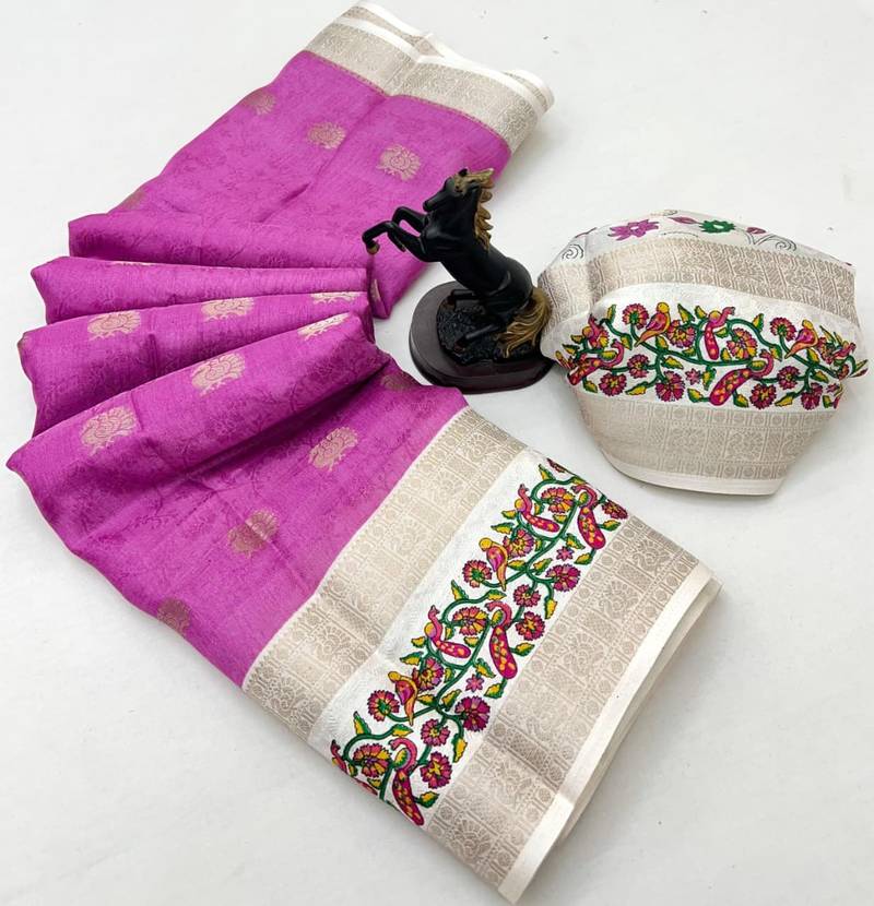 | Product Name | Pink Soft Tussar Silk Saree With Zari Butti & Kashmiri Style Woven Border | |