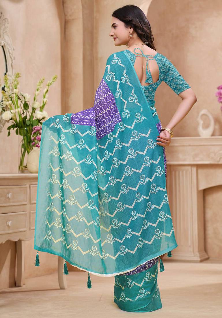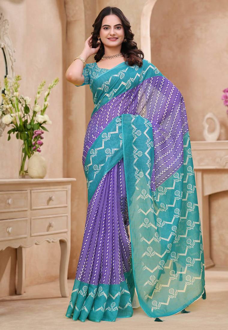 Product Name Purple Printed Art Silk Designer Pallu Saree