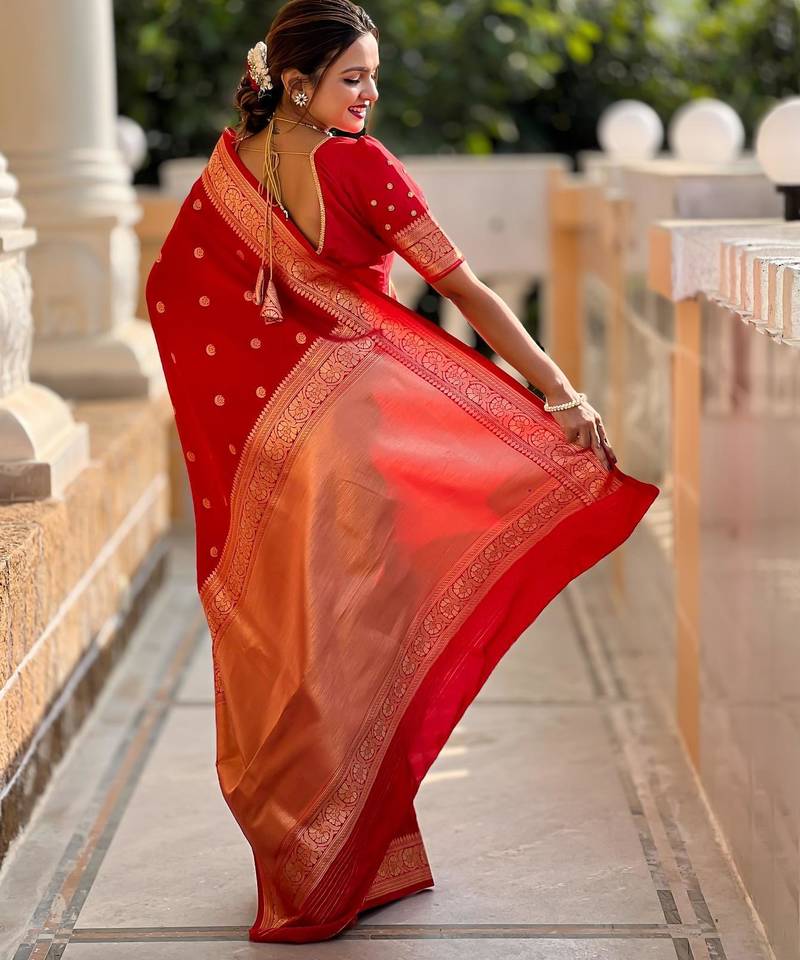 | Product Name | Red Elegant Art Silk Woven Saree With Rich Zari Border | |