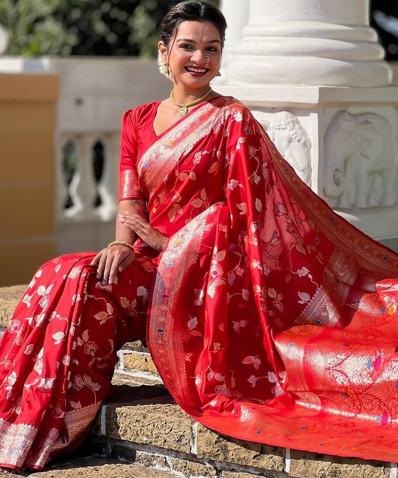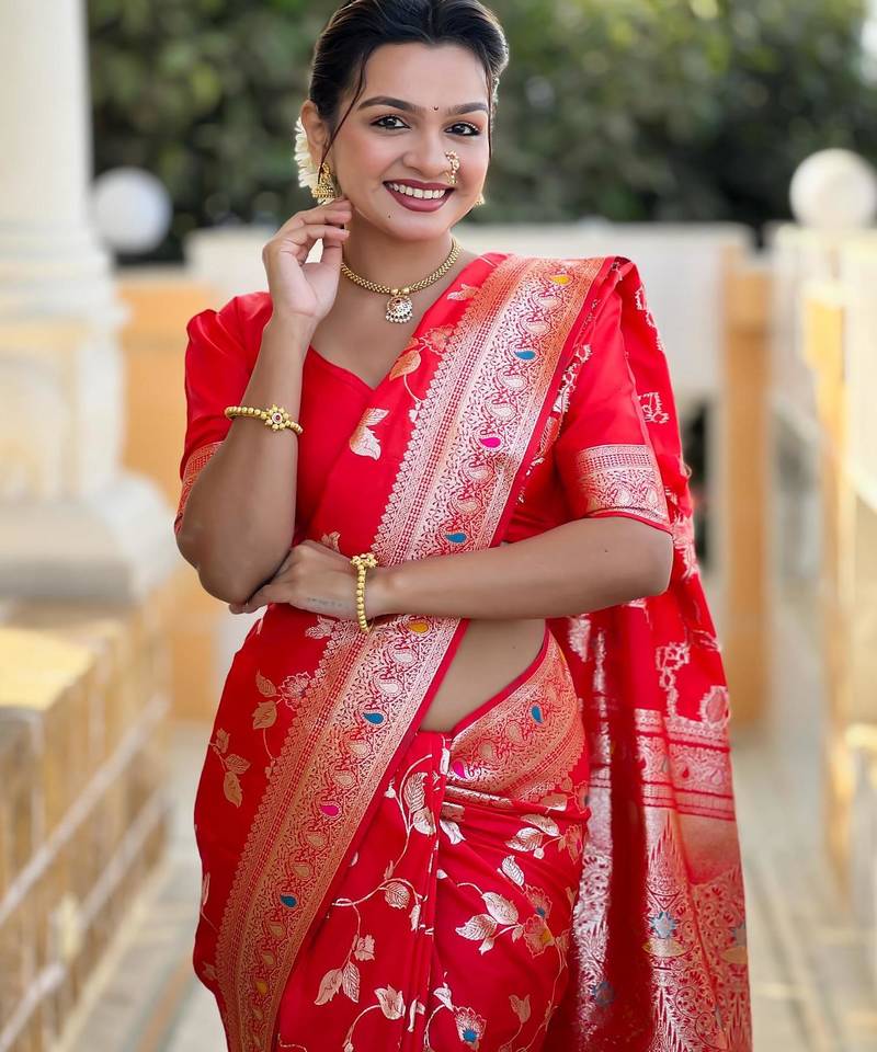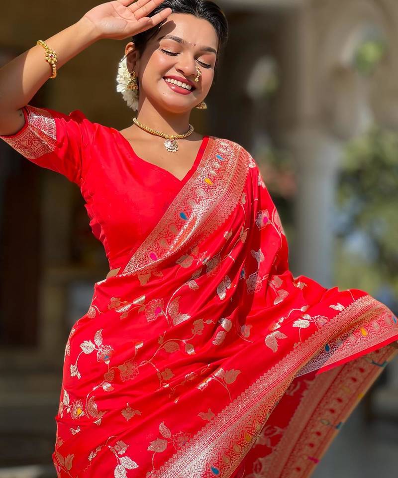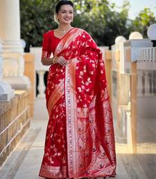 | Product Name | Red Elegant Art Silk Woven Saree With Rich Zari Border | |