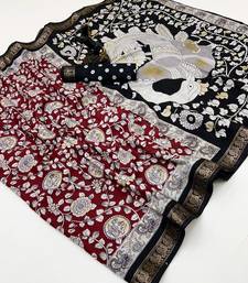 | Product Name | Red Viscose Silk Saree With Peacock Zari & Bagru Print | |