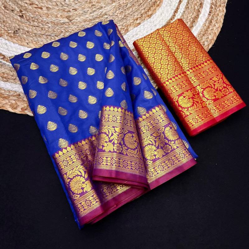 Royal blue soft banarasi silk saree with zari weaving & rich pallu
