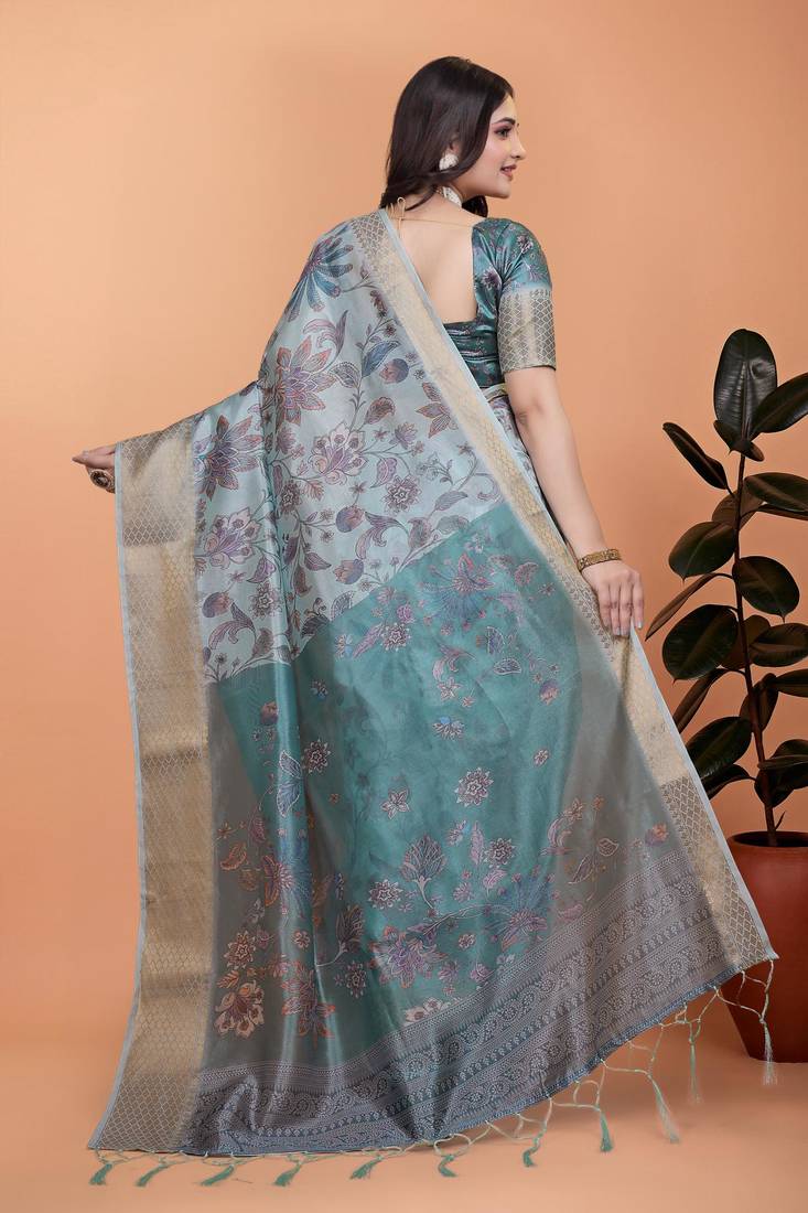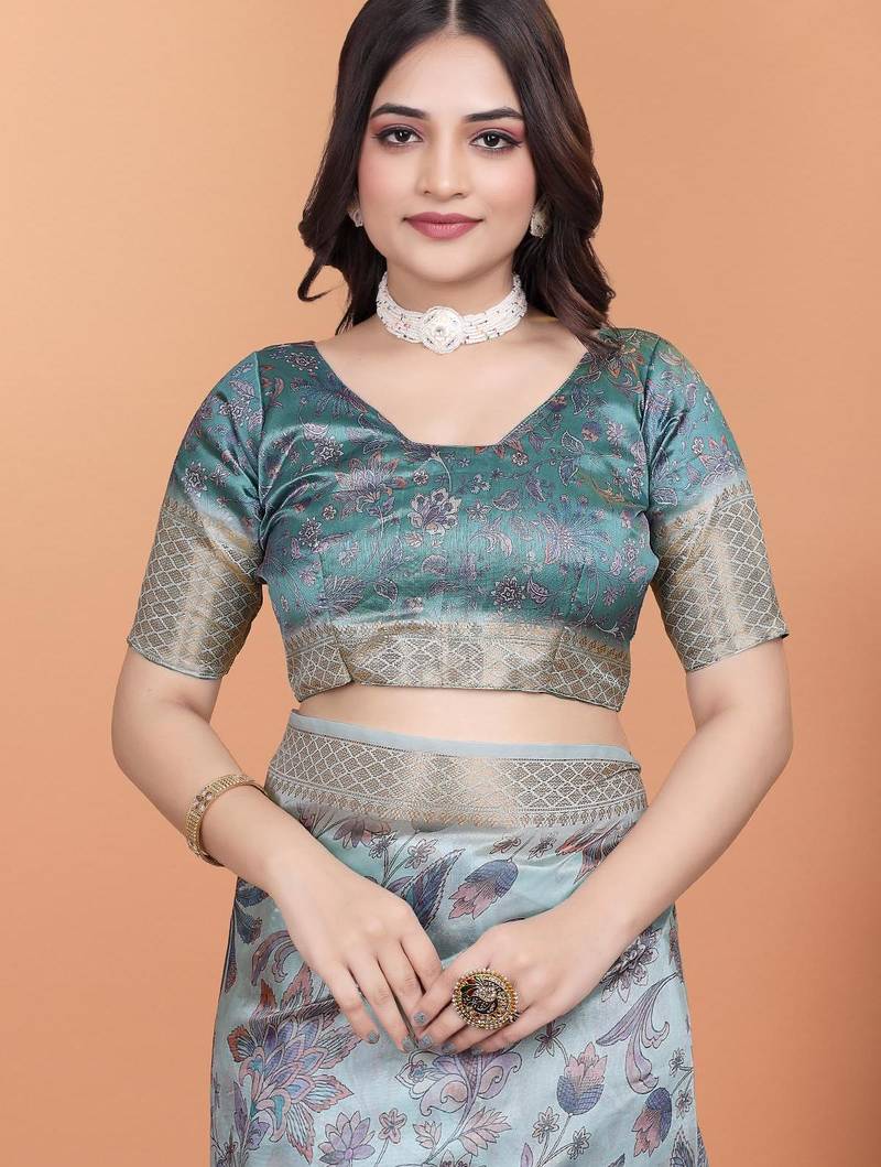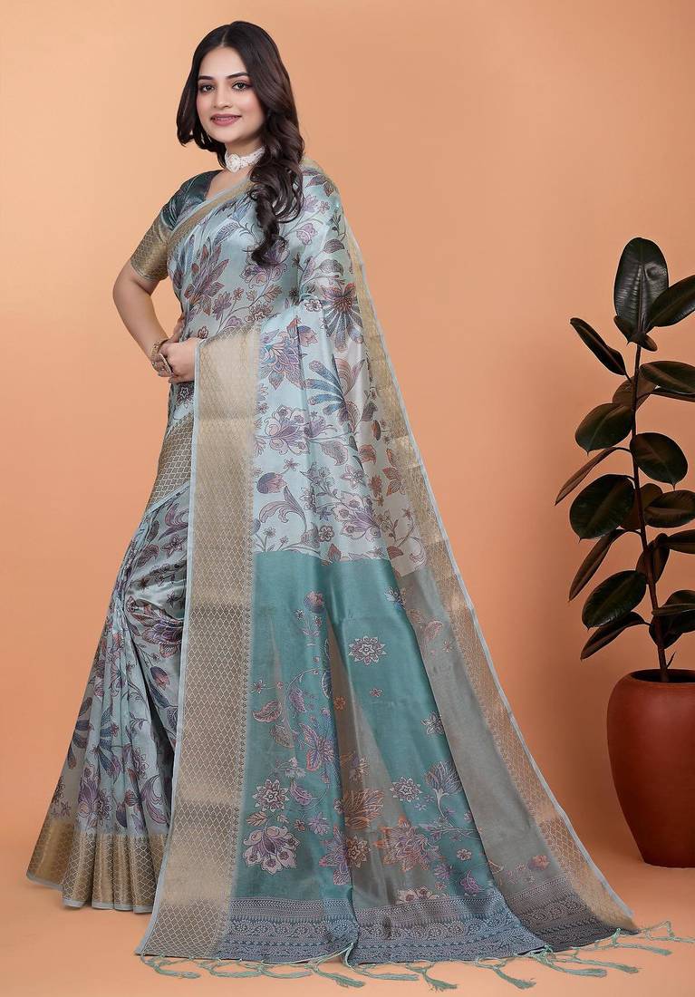 | Product Name | Sky Blue Printed Art Silk Designer Pallu Saree | |