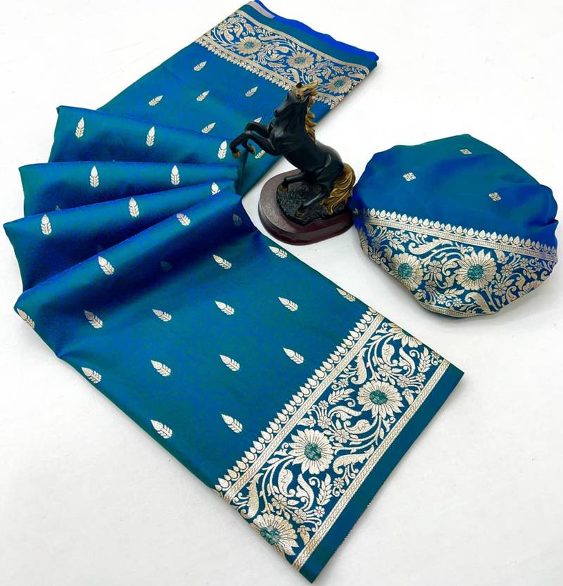 | Product Name | Teal Banarasi Silk Saree With Embossed Weaving Design | |