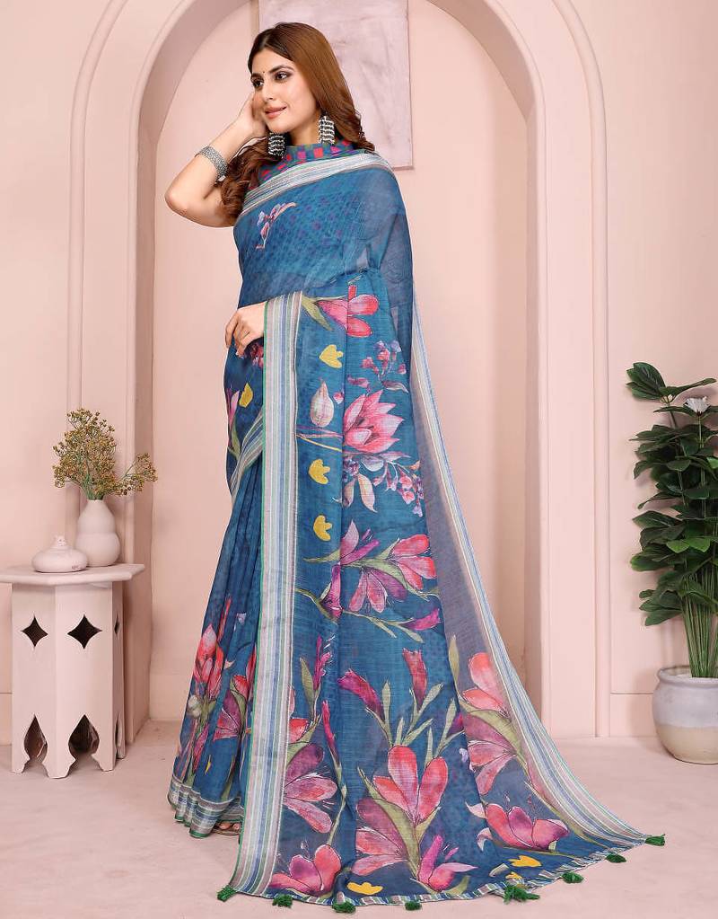 | Product Name | Teal Printed Art Silk Designer Pallu Saree | |