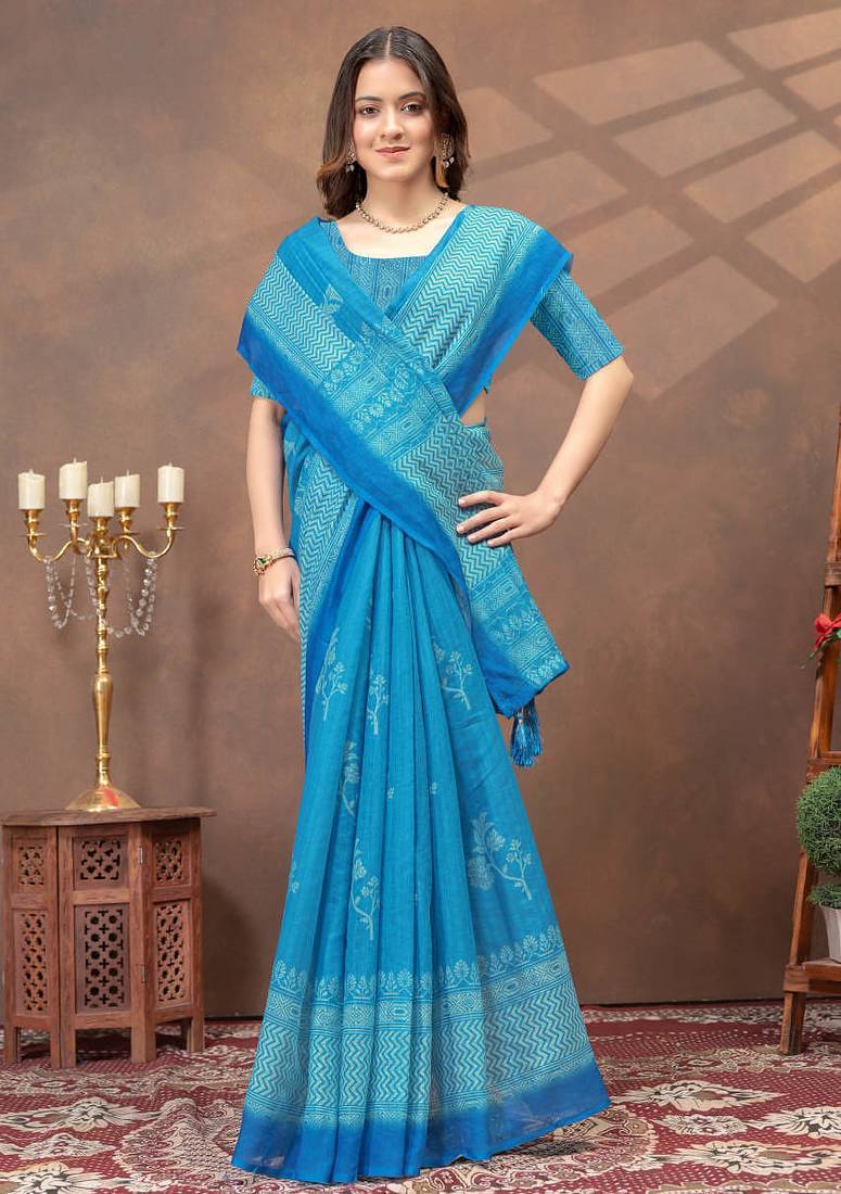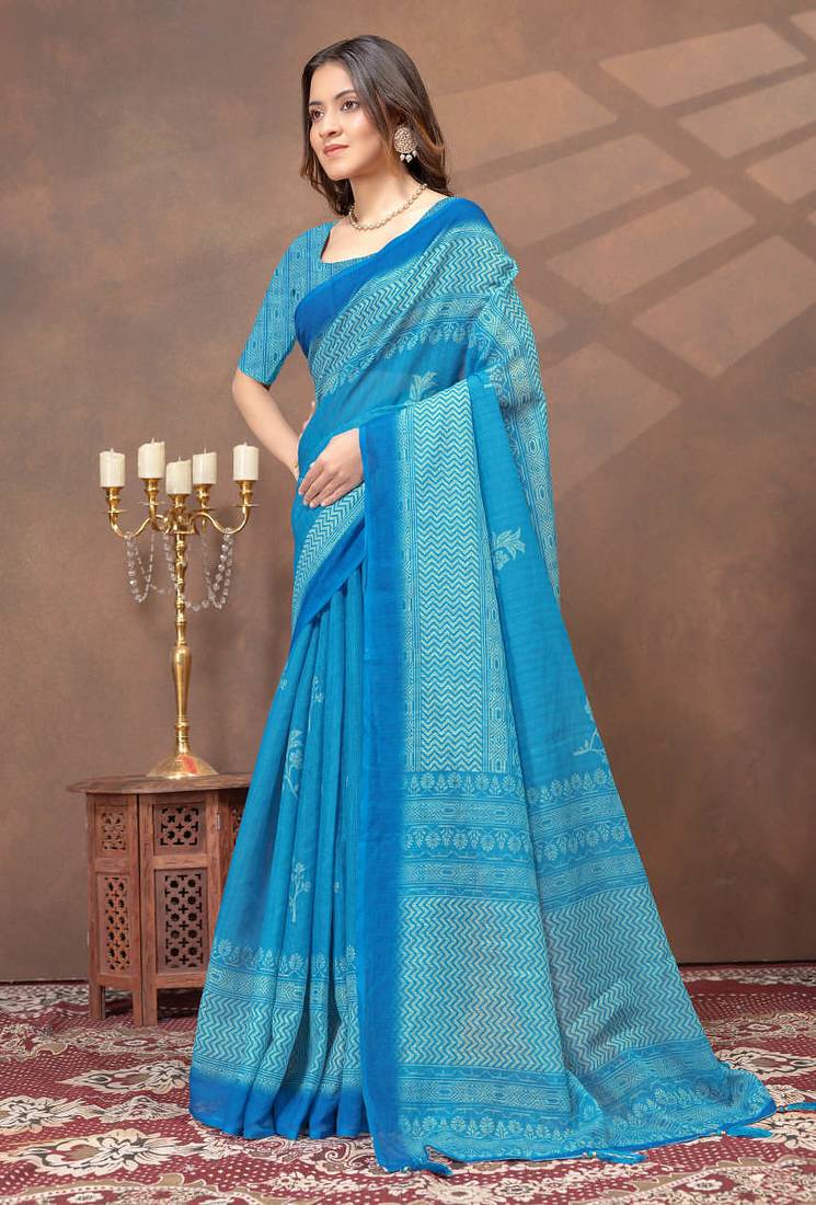 | Product Name | Teal Printed Art Silk Designer Pallu Saree | |