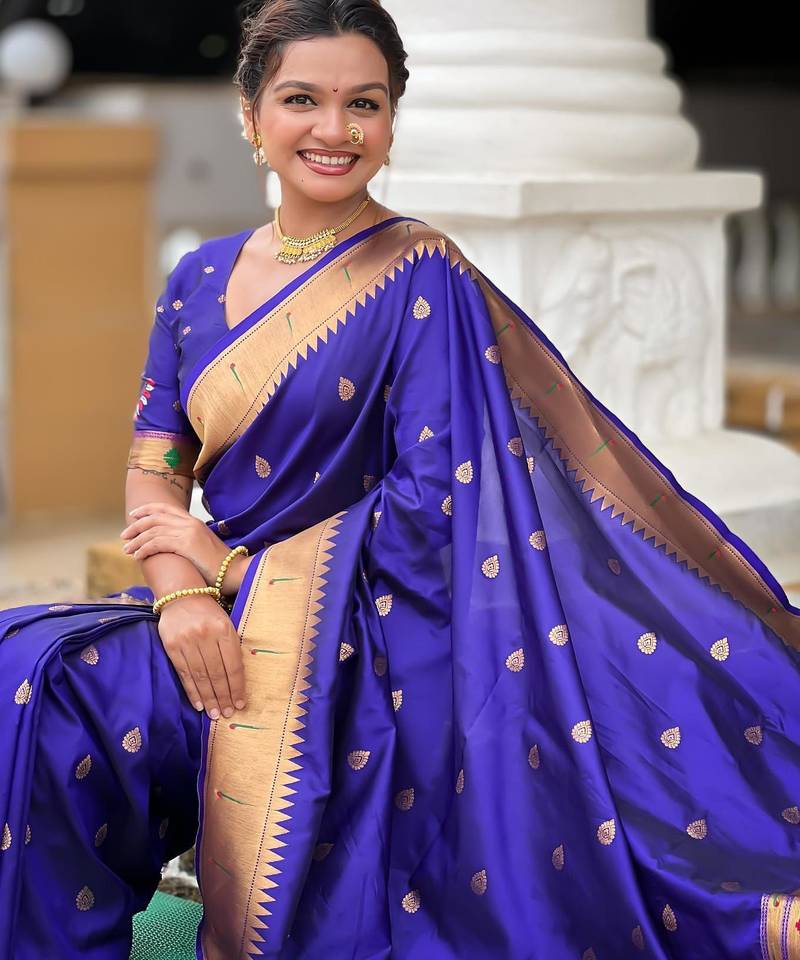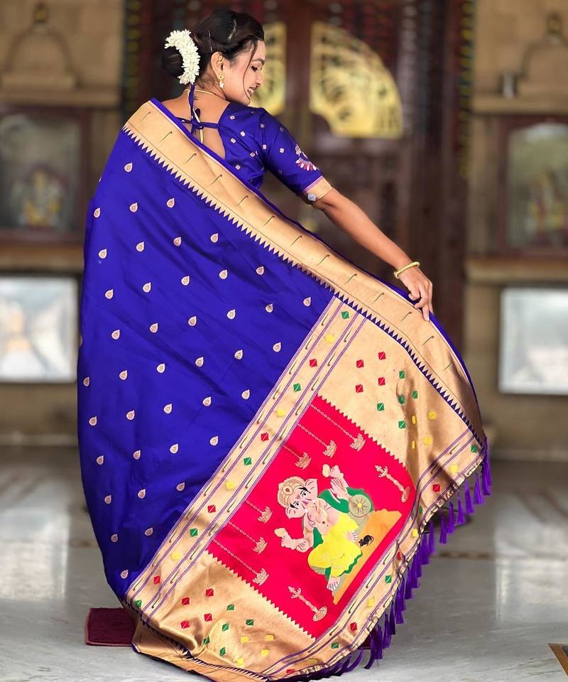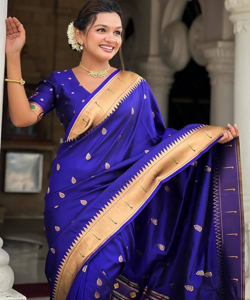 | Product Description | Soft Paithani Silk Saree With Zari Weawing Motifs Design And Meenakari Weawing Rich Pallu With Meenakari Weawing Munia Border & Tassels Attached At Pallu End. Blouse : Enrich Silk Weawing Contrast Blouse Piece With Sleeve Border , |