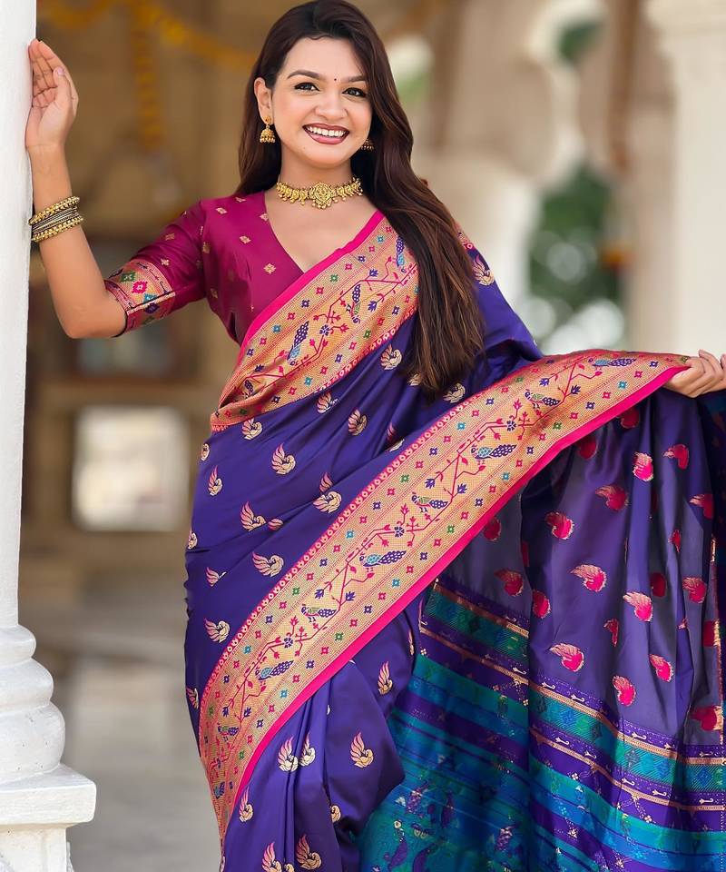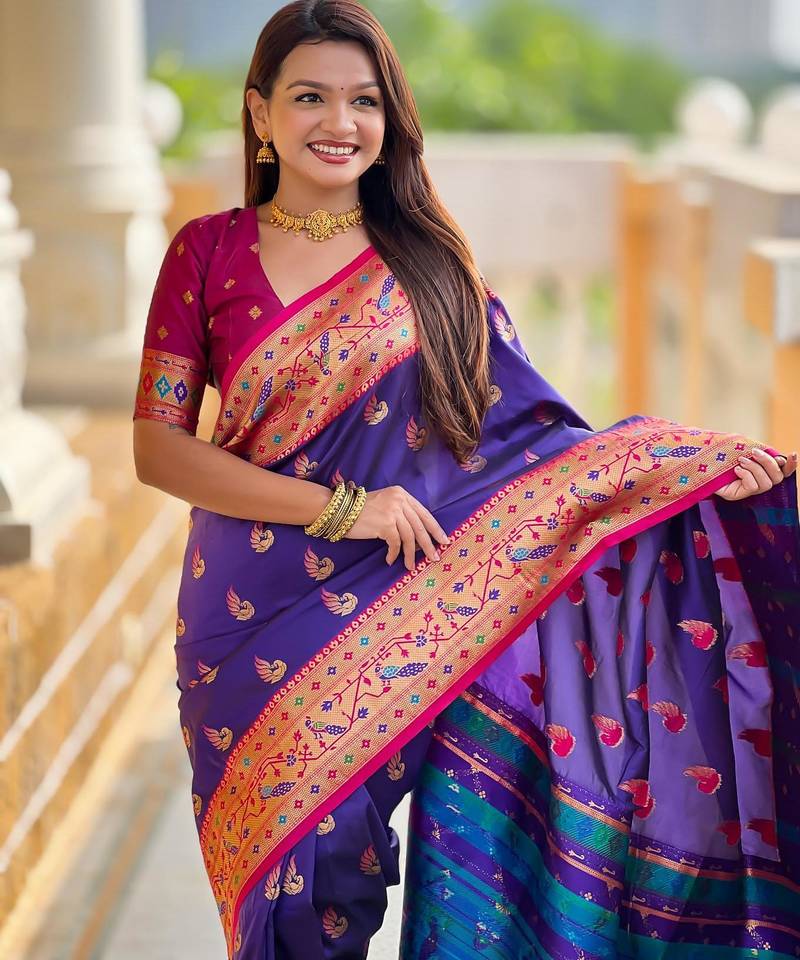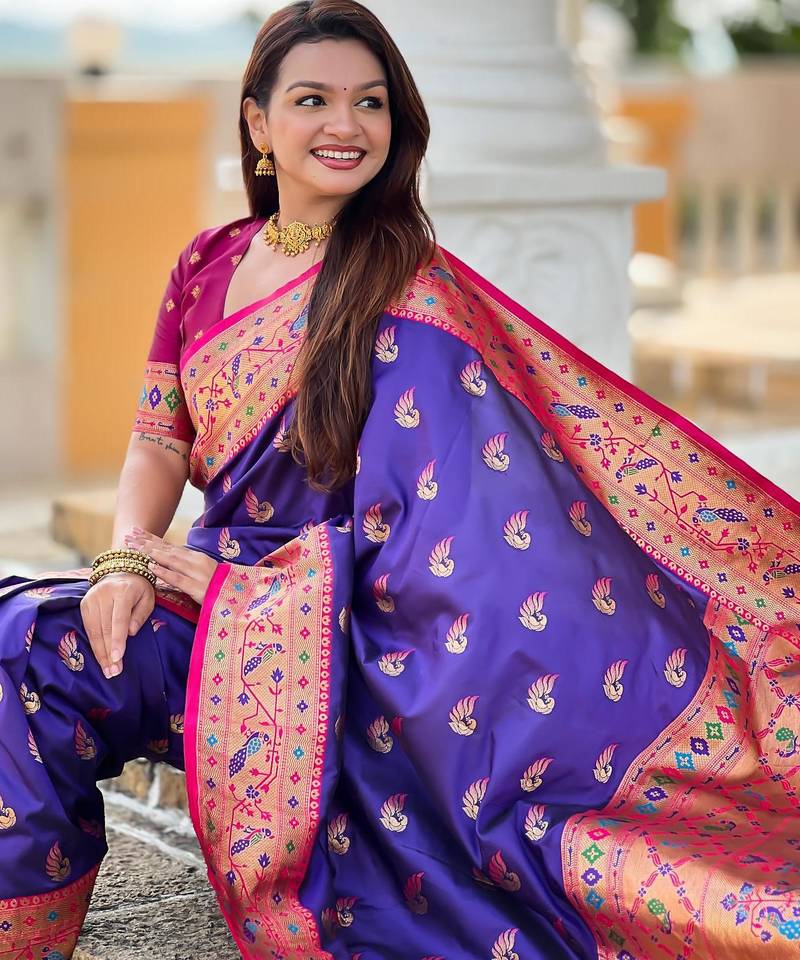 Violet elegant art silk woven saree with rich zari border