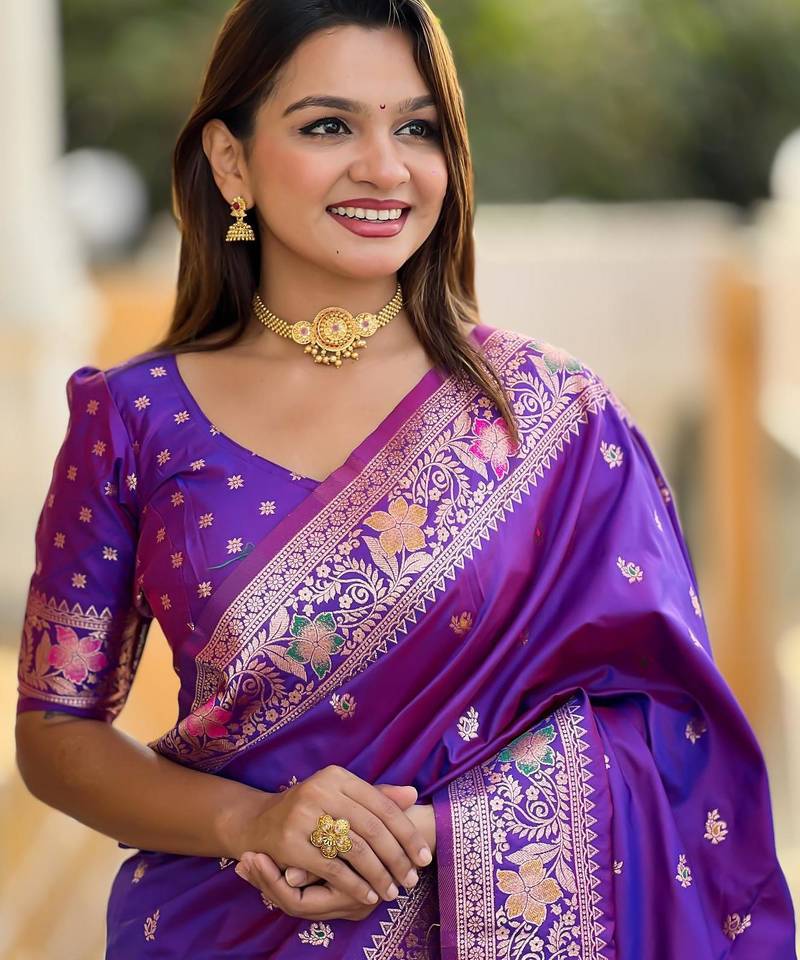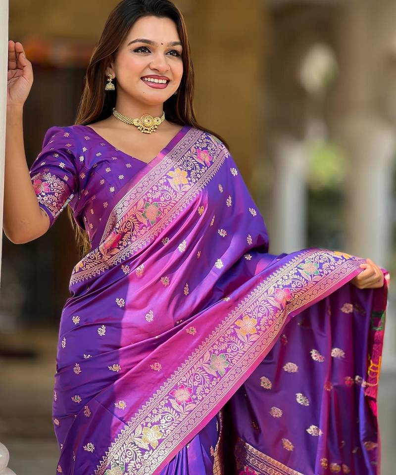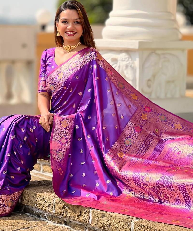 | Product Name | Violet Elegant Art Silk Woven Saree With Rich Zari Border | |
