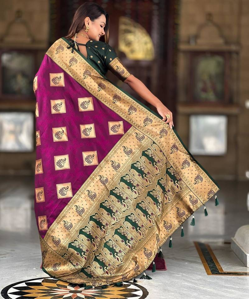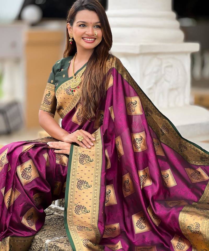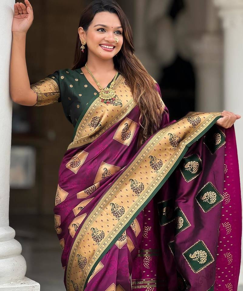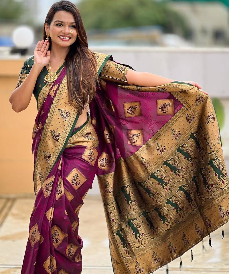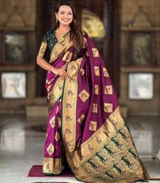 Wine elegant art silk woven saree with rich zari border