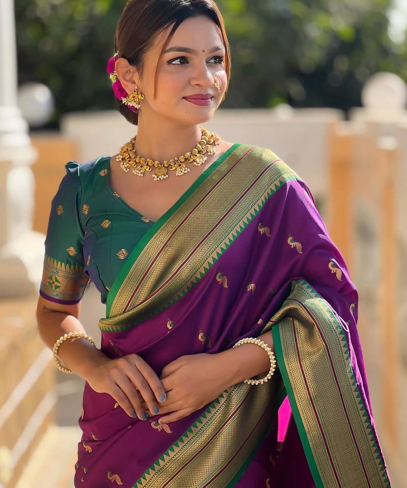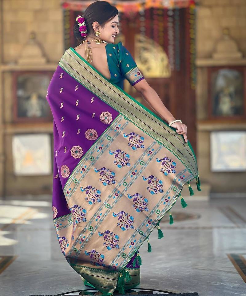 | Product Description | Soft Paithani Silk Saree With Zari Weawing Motifs Design And Meenakari Weawing Rich Pallu With Meenakari Weawing Border & Tassels Attached At Pallu End. Blouse : Enrich Silk Weawing Contrast Blouse Piece With Sleeve Border , |