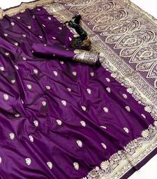 Wine paithani soft silk saree with nath butti & rich zari pallu