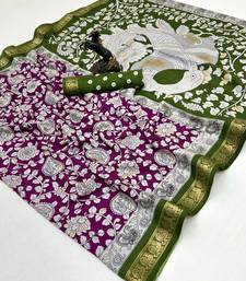 Wine viscose silk saree with peacock zari & bagru print