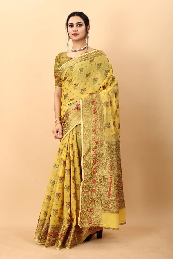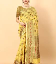 Yellow elegant art silk woven saree with rich zari border