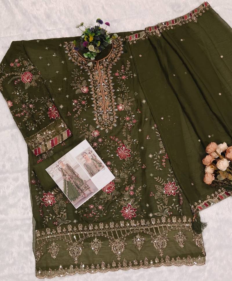 Details Elevate Your Wedding And Festive Wardrobe With This Mehendi Silk Embroidered Sequin Semi Stitched Salwar Suit Designed For Timeless Elegance. Crafted From Premium Silk Fabric, This Outfit Offers A Smooth, Luxurious Feel With A Graceful Fall That Enhances Your Overall Silhouette. The Kurta Features Intricate Thread Embroidery Highlighted With Delicate Sequin Detailing, Creating A Refined Shimmer Perfect For Receptions, Engagement Ceremonies, And Festive Celebrations.