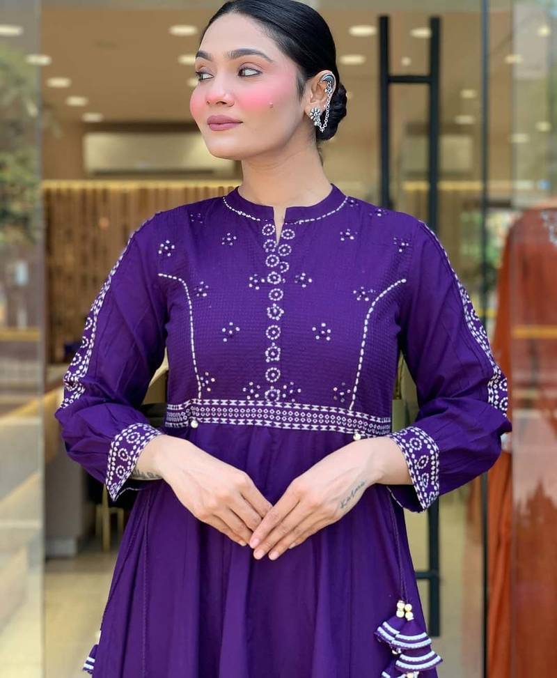Kurti Work : Embroidered With Hand Printed And Tassels