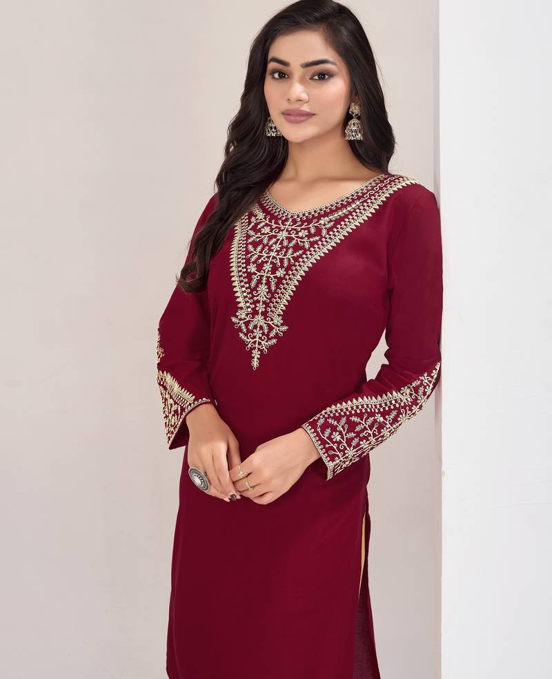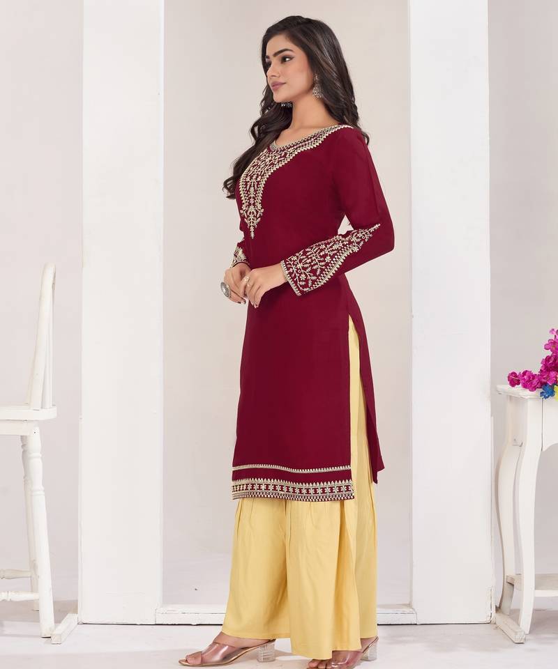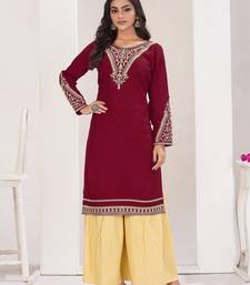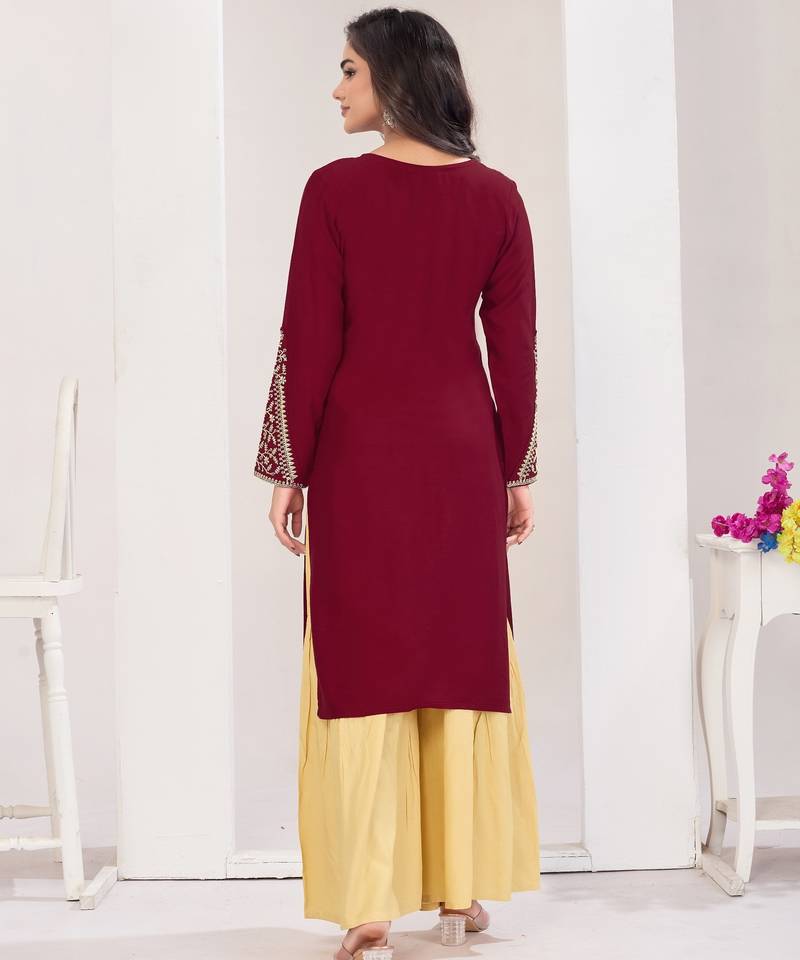 | Product Name | Superior Quality Rayon Fabric Maroon Color Embroidery Kurta With Sharara | |