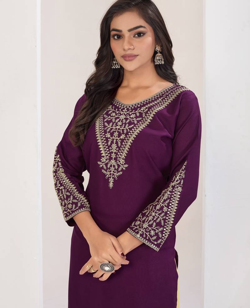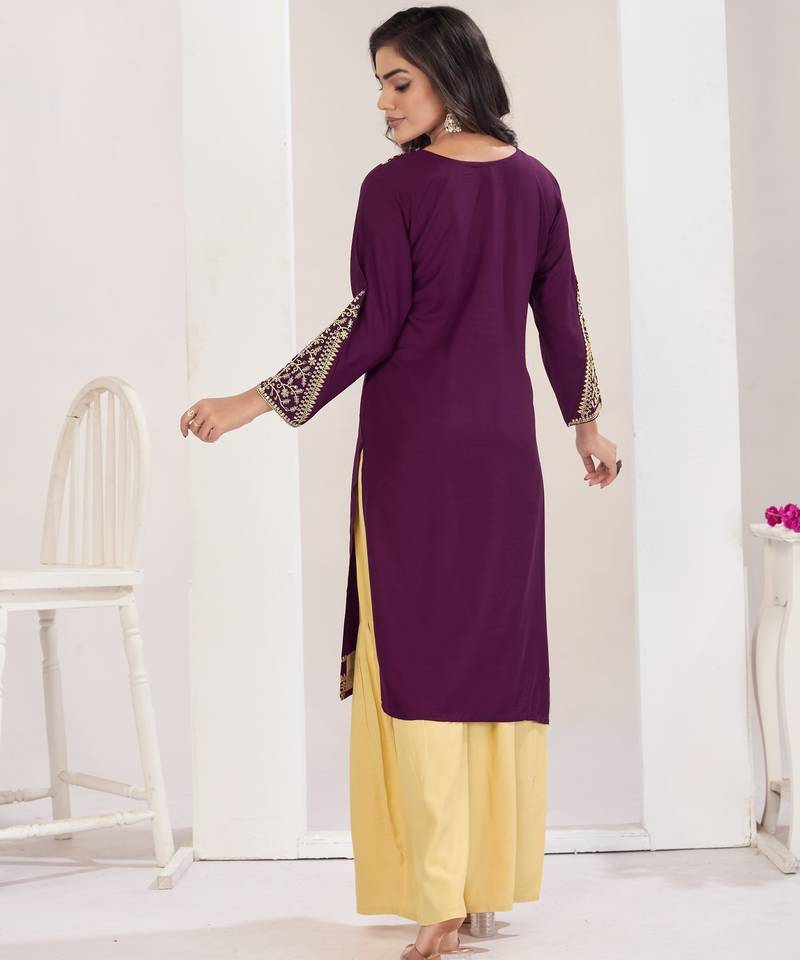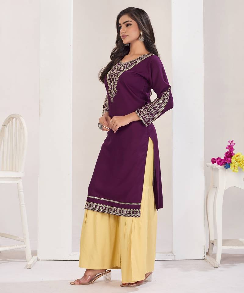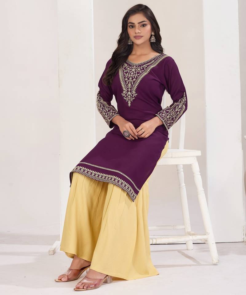 | Product Name | Superior Quality Rayon Fabric Wine Color Embroidery Kurta With Sharara | |