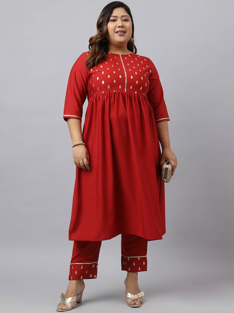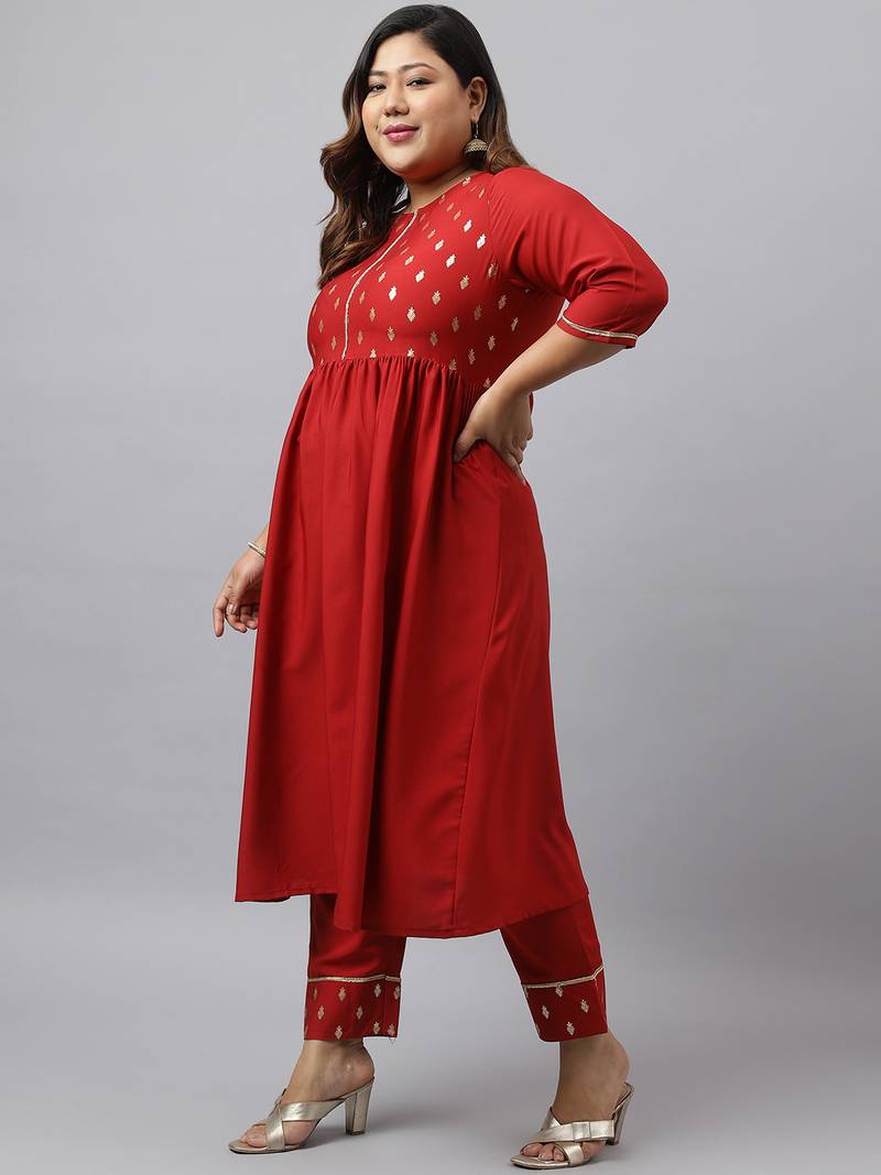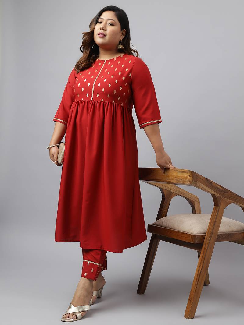 Grace Any Traditional Event In Style With This Janasya Maroon Poly Crepe Printed Kurta Set. This Flared Kurta Comes With Solid Same Coloured Pant. Pair This Kurta Set With Hoop Earrings And Heels To Complete Your Look
