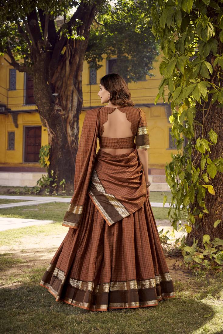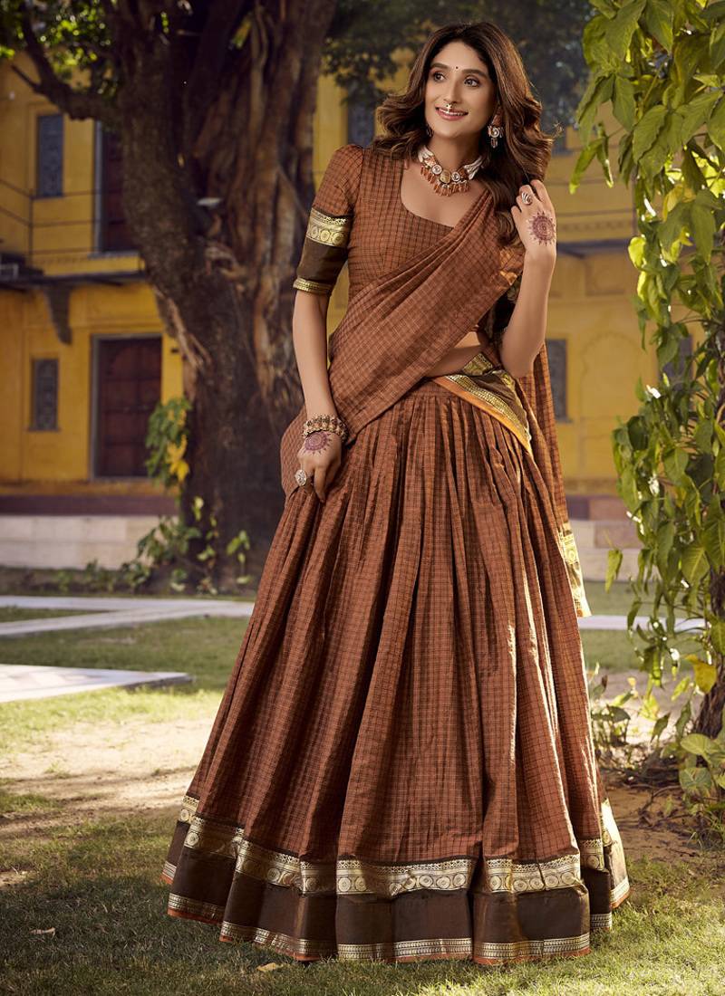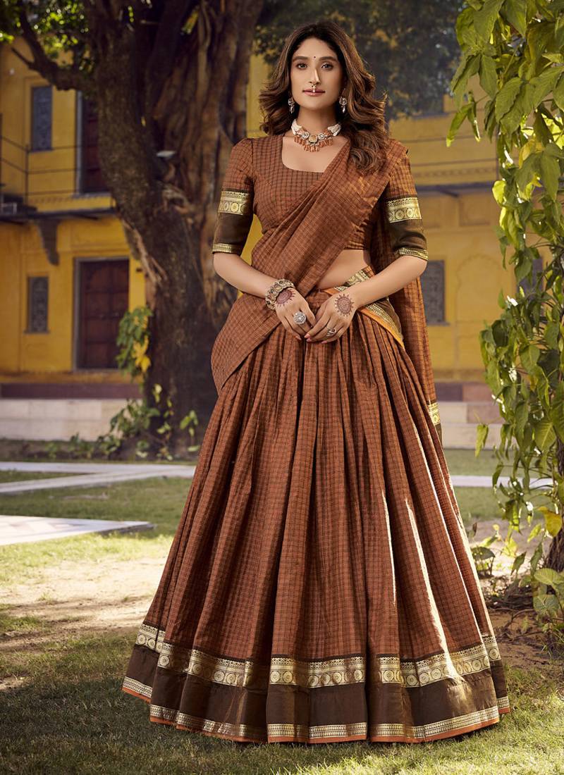 Orange cotton zari weaving work chaniya choli - full stitched free size