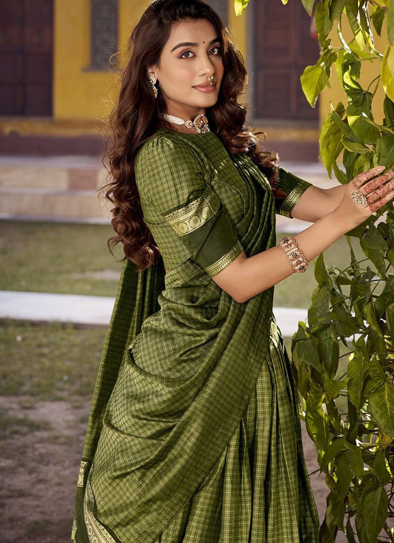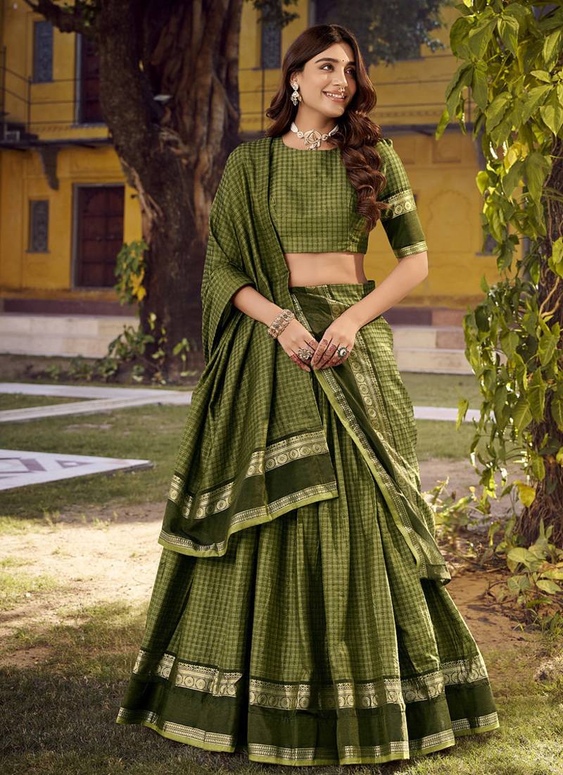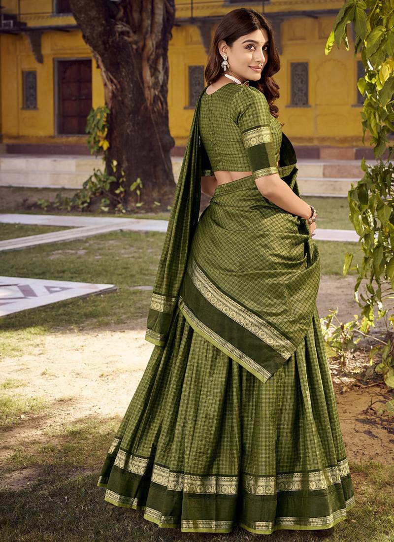Green cotton zari weaving work chaniya choli - full stitched free size