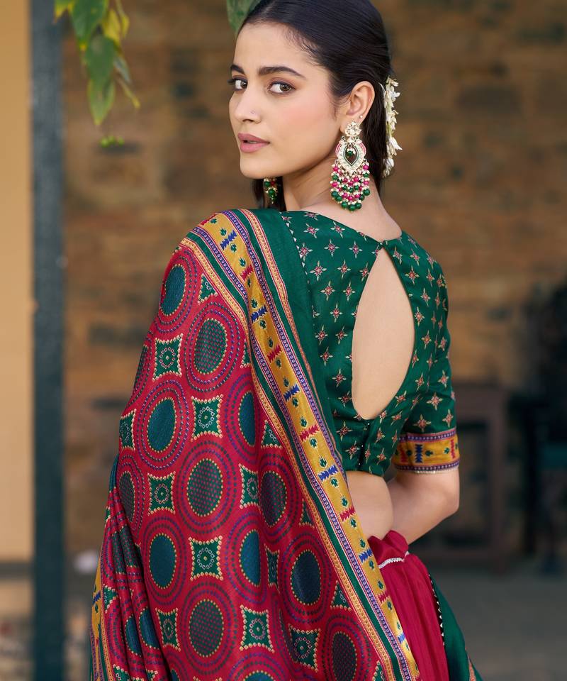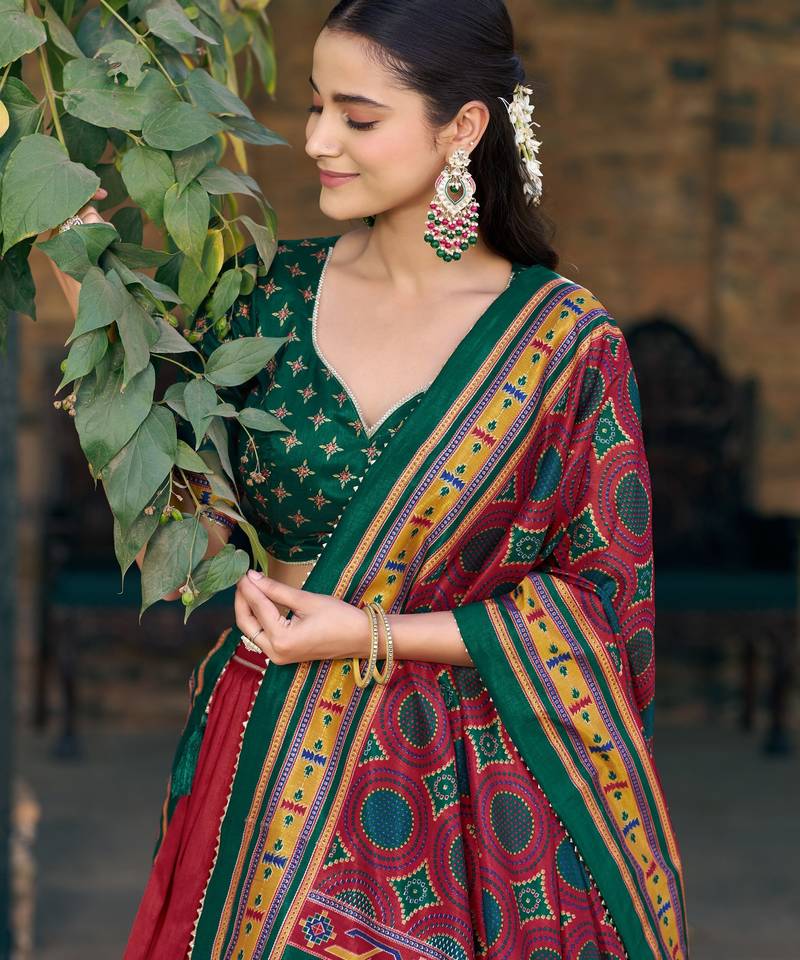 Designer tasar silk printed lehenga choli with iconic sparkle edition.