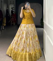 Yellow cotton zari weaving work chaniya choli - full stitched free size