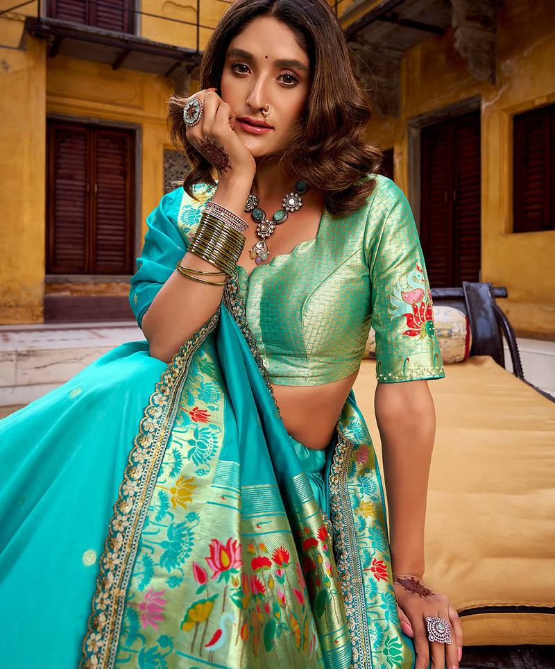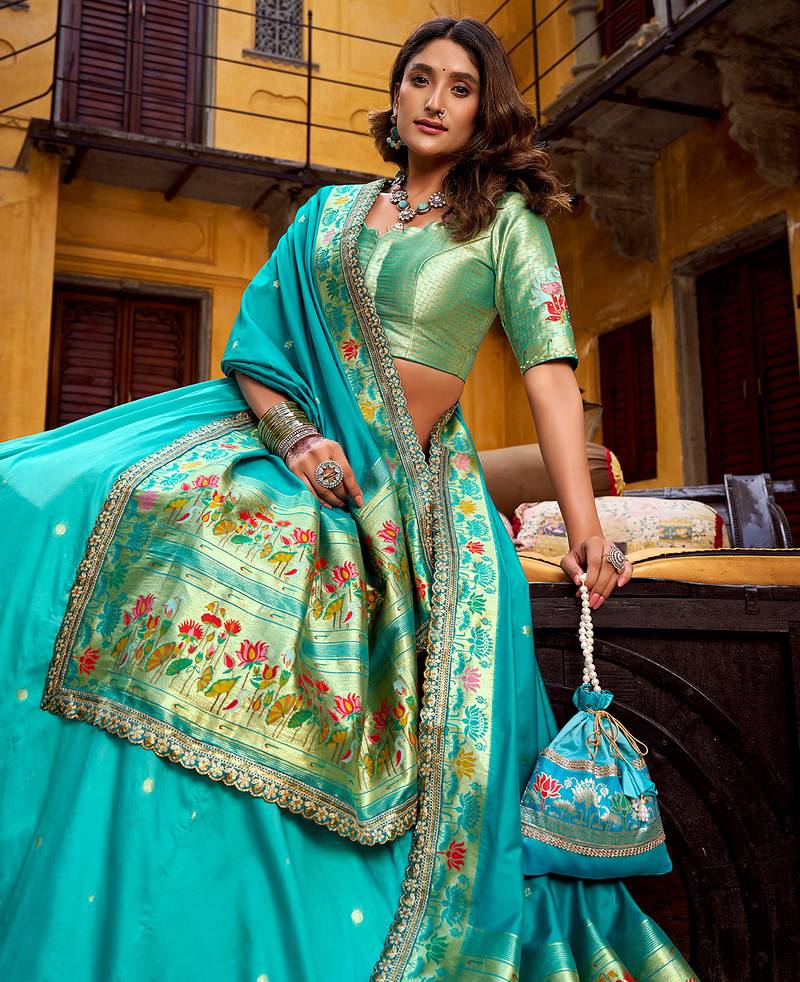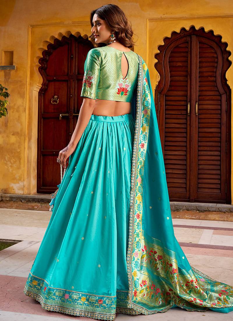 Royal paithani soft silk lehenga choli with zari weaving, sequins & thread embroidery with batwa